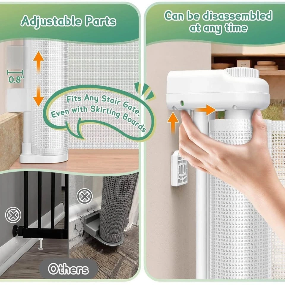 • Reinforcement Rods: Unlike cheaper mesh gates, this one includes reinforcement rods to prevent pets or toddlers from crawling underneath.