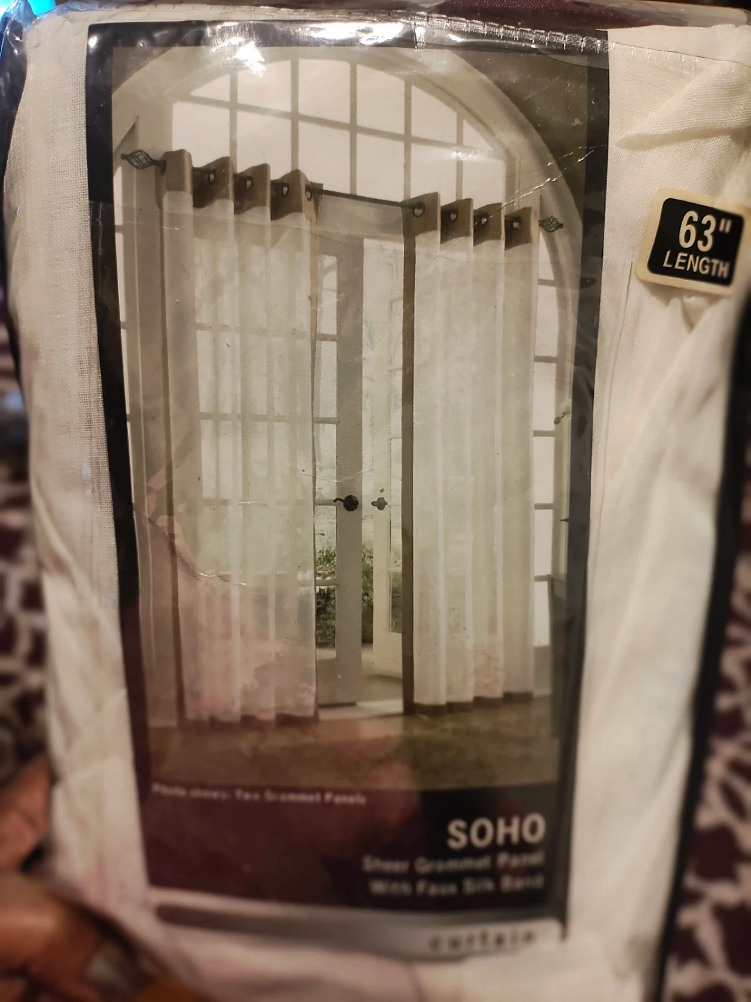 Selling a new package of Soho Sheer Grommet Curtain Panels. The panels are 63" in length.
