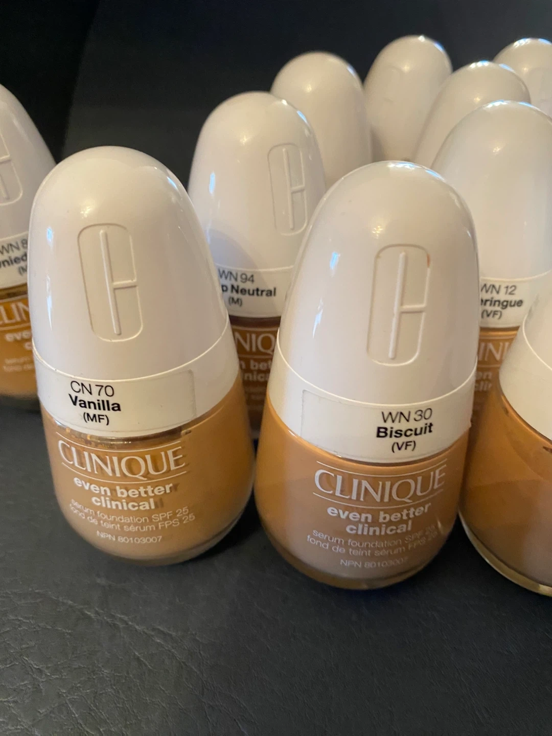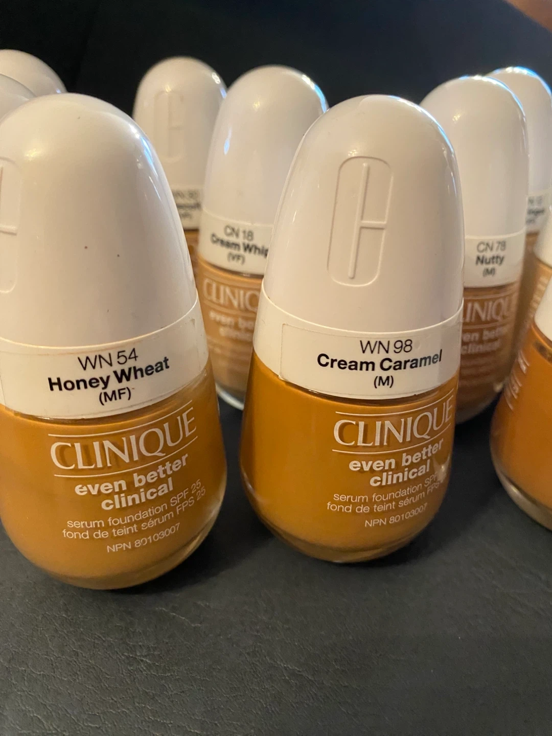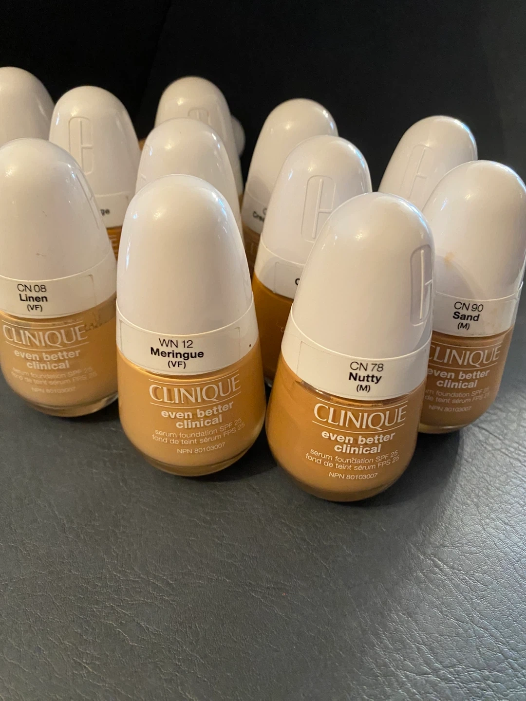 Clinique Even Better Clinical Serum Foundation SPF 25. This foundation is formulated with serum ingredients and SPF 25. It's available in various shades including CN 08 Linen, WN 12 Meringue, CN 78 Nutty, CN 90 Sand, WN 94 Neutral, WN 12 Meringue, CN 70 Vanilla, WN 30 Biscuit, WN 54 Honey Wheat, and WN 98 Cream Caramel.