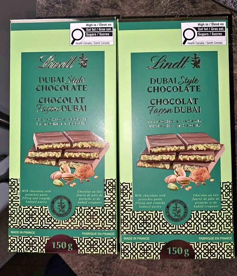 Lindt Dubai Style Pistachio & Kadayif Chocolate Bars.