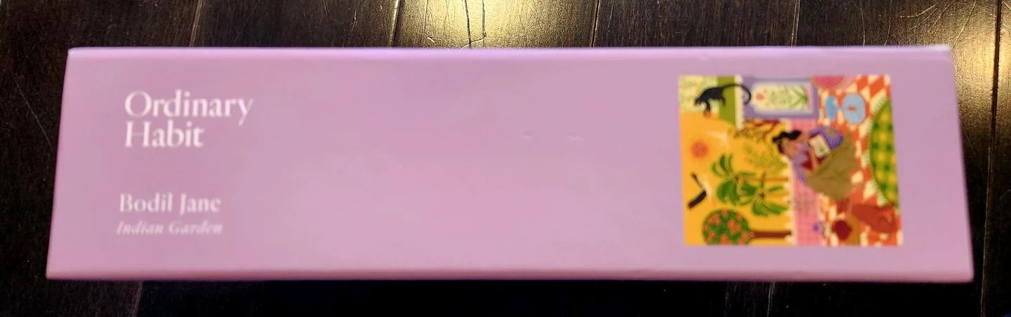 This Ordinary Habit puzzle features Bodil Jane's "Indian Garden" artwork. It's a 500-piece collection made with recycled paper. It's designed to help you reconnect and relax. All pieces accounted for. Only used once.