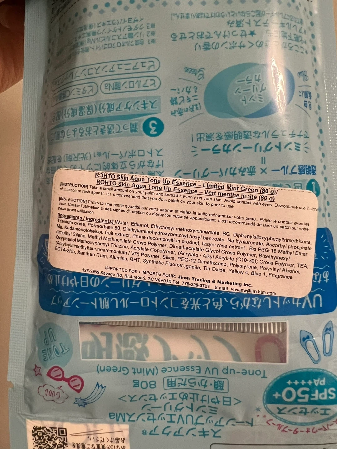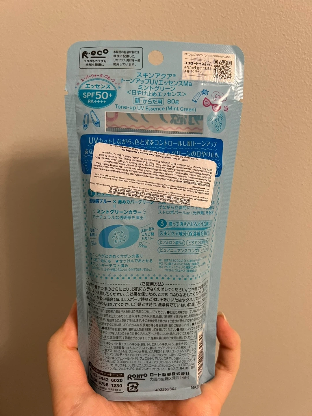 Product description: Skin Aqua Tone Up UV Essence Mint Green delivers a refreshing touch and naturally enhances skin radiance. The mint green tint covers redness and brings out clarity, while reflecting sunlight and light to create a dimensional glow on the skin.