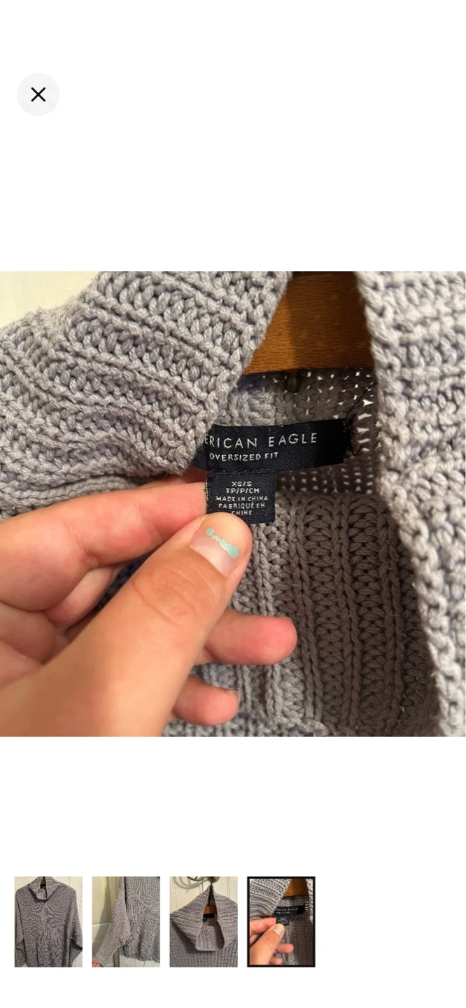 American eagle brand. Cowl neck pullover knit sweater. Grey in colour. Size women’s xs/s. Brand new condition $20