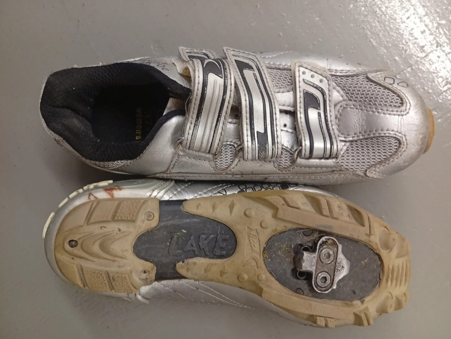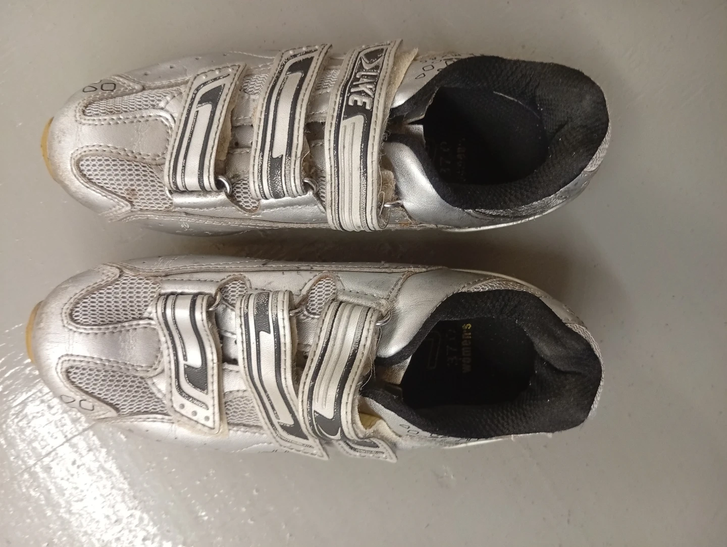 This brand new Bontrager helmet is great for your daily rides. It features MIPS technology for added safety. The adjustable strap system ensures a comfortable and secure fit. Clip in Road Bike shoes stiff silver 6.5.