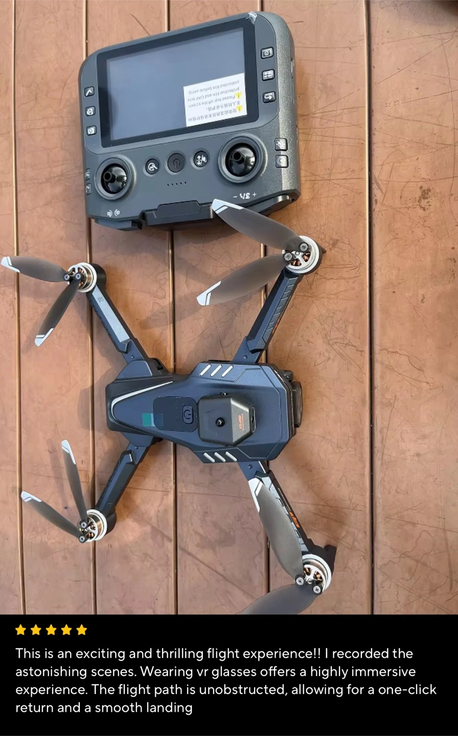 It also features ESC dual camera, optical flow hovering, and brushless power. The remote control has a 12.5cm large screen. Get ready for some steady shots and explore the world!