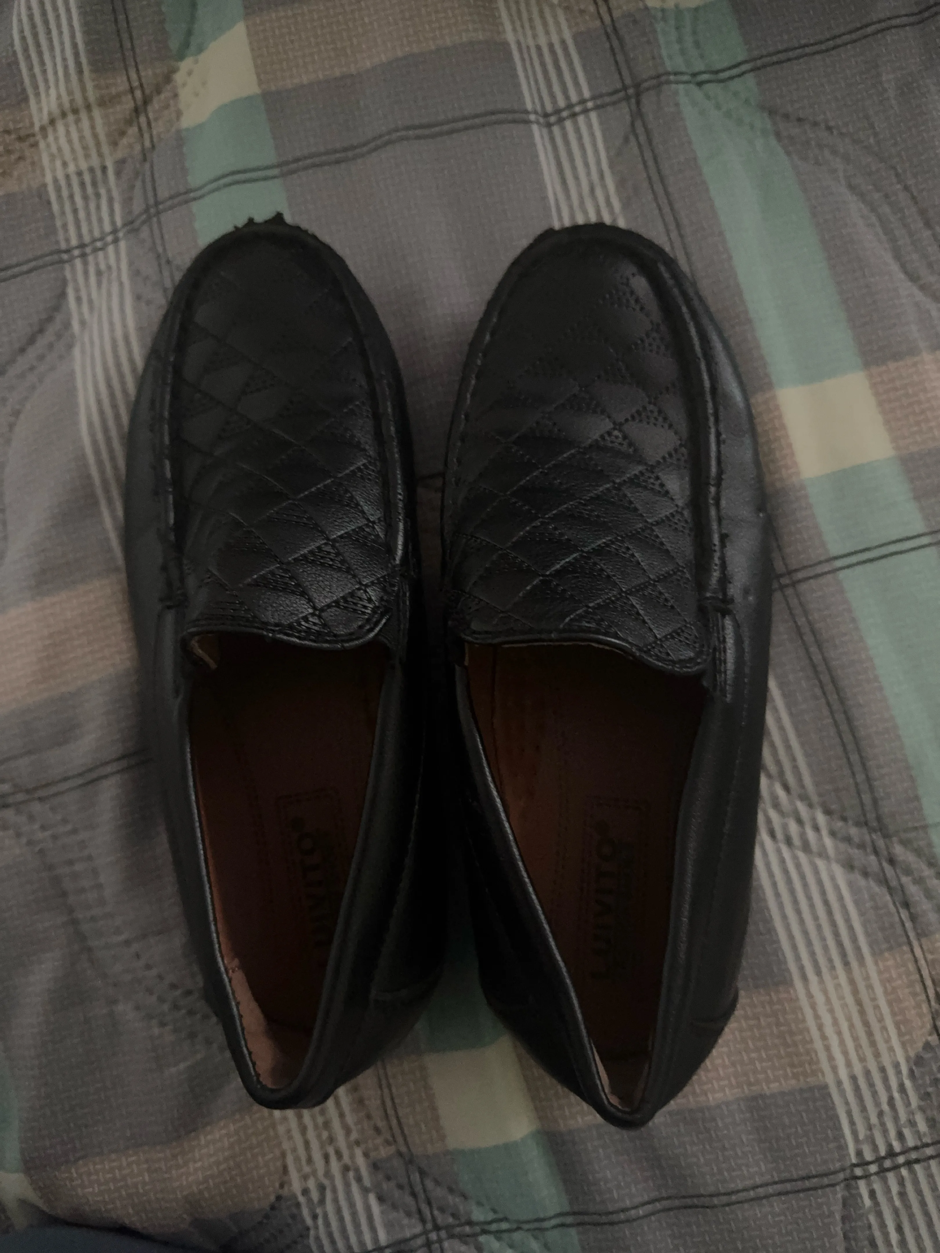 Selling a pair of Luvito black leather loafers. They have a quilted design on the top. Great for casual wear