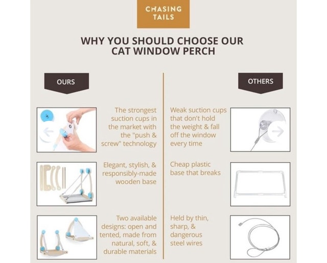 Give your kitty an amazing lookout with this Chasing Tails cat perch window bed that has 2 builds; an open design or a private tented nook. This cat window perch for indoor cats allows your pet to birdwatch & sunbathe to its heart's content! New in box. Here are some of the perch's features: * 2 STYLES * STRONG SUCTION * Holds up to 20 lbs * Soft, machine washable hammock and felt cloths * Durable & stylish wooden base This perch is purr-fect for any cat who loves to lounge and soak up the sun. Don't miss out on the chance to give your furry friend the ultimate relaxation spot! If the ad is up, it's available! I've noticed similar cat perches selling for around $60-$90, so I think $30 is an extremely fair price. Payment: Cashless payment, Cash accepted.