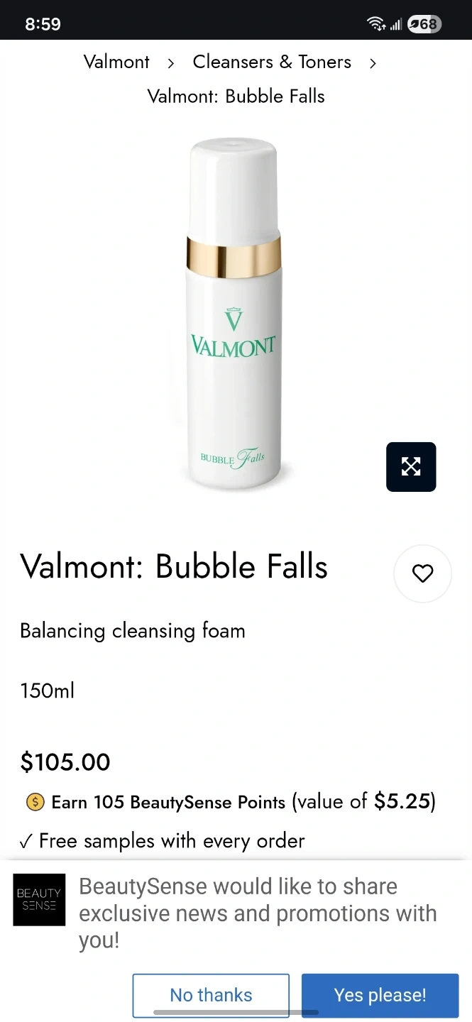 Valmont Bubble Falls balancing cleansing foam. It's a balancing cleansing foam with a 150ml volume. Made in Switzerland.
