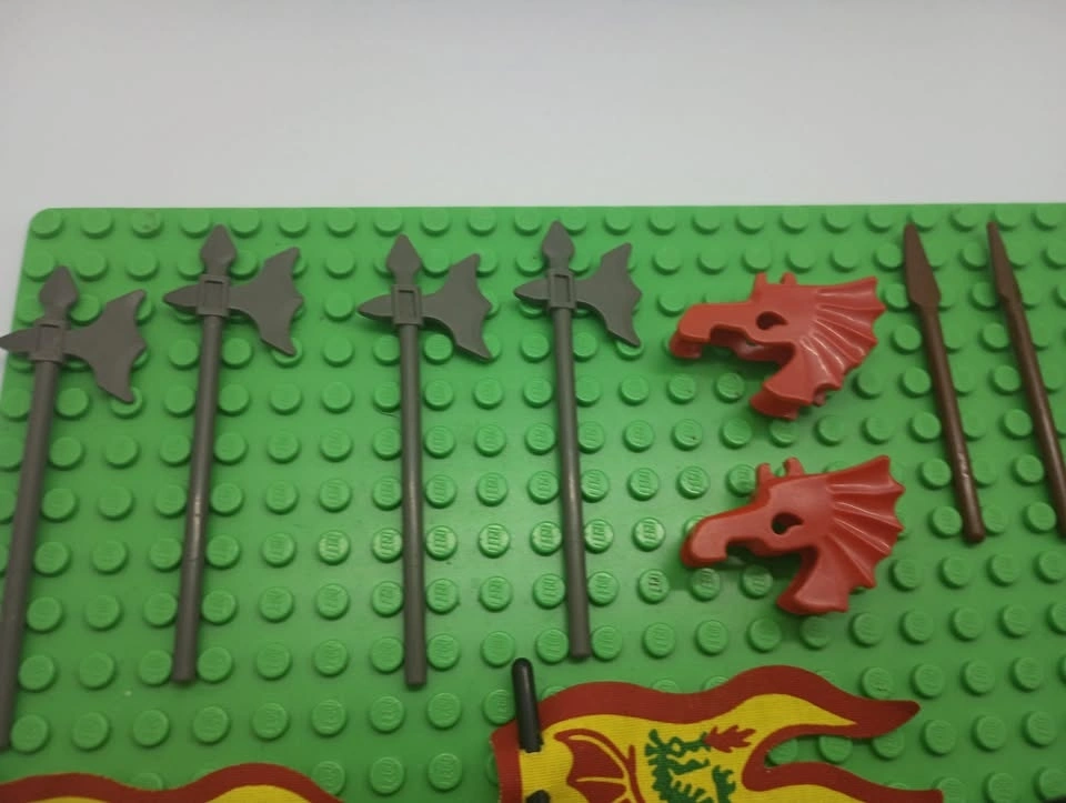 Lot of vintage Lego Castle and vintage Lego Ninja sets minifigs and other specialty pieces including flags, shields, head gear, spears, halberds and other pieces. At least one of these minifigs is considered rare and goes for over $40 avg on Bricklink and a few others and the larger fabric flags are worth about $20 on Bricklink.