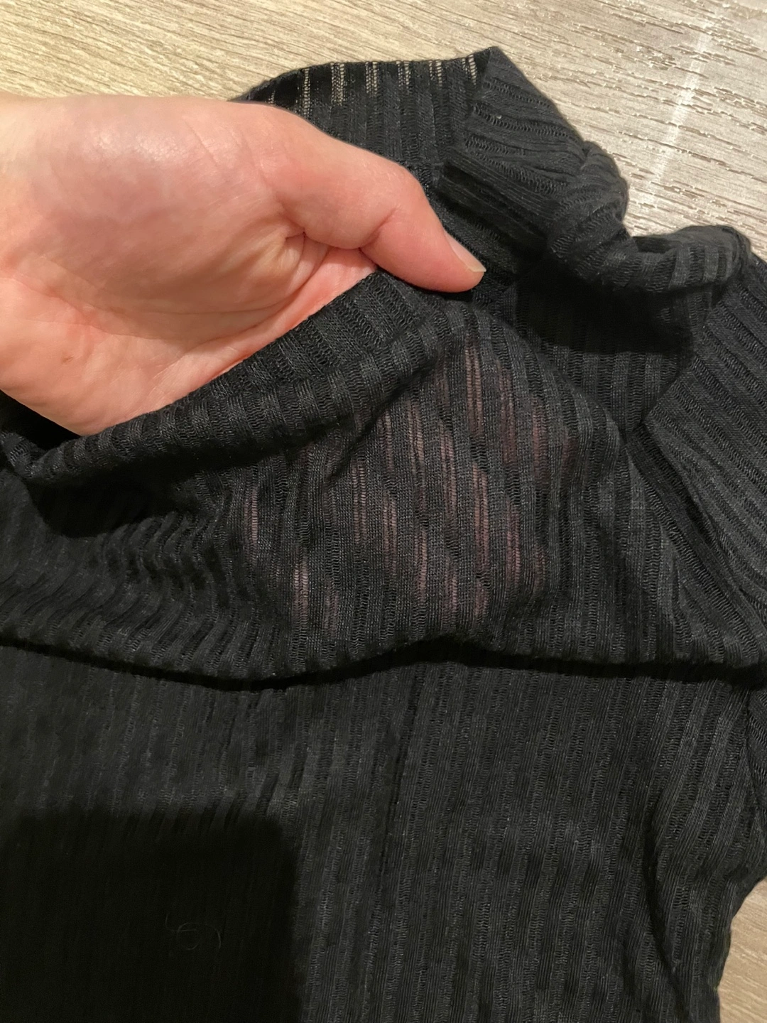 The top appears to be black and see-through. It has a turtleneck. I believe it would make a great layering piece.