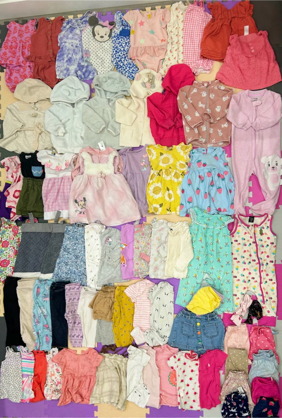 Selling a big bundle of baby and toddler clothes! A mix of dresses, jackets, bunting suit, long sleeves, ternos, tops, bottoms, and outerwear are in this lot. All in good used condition!