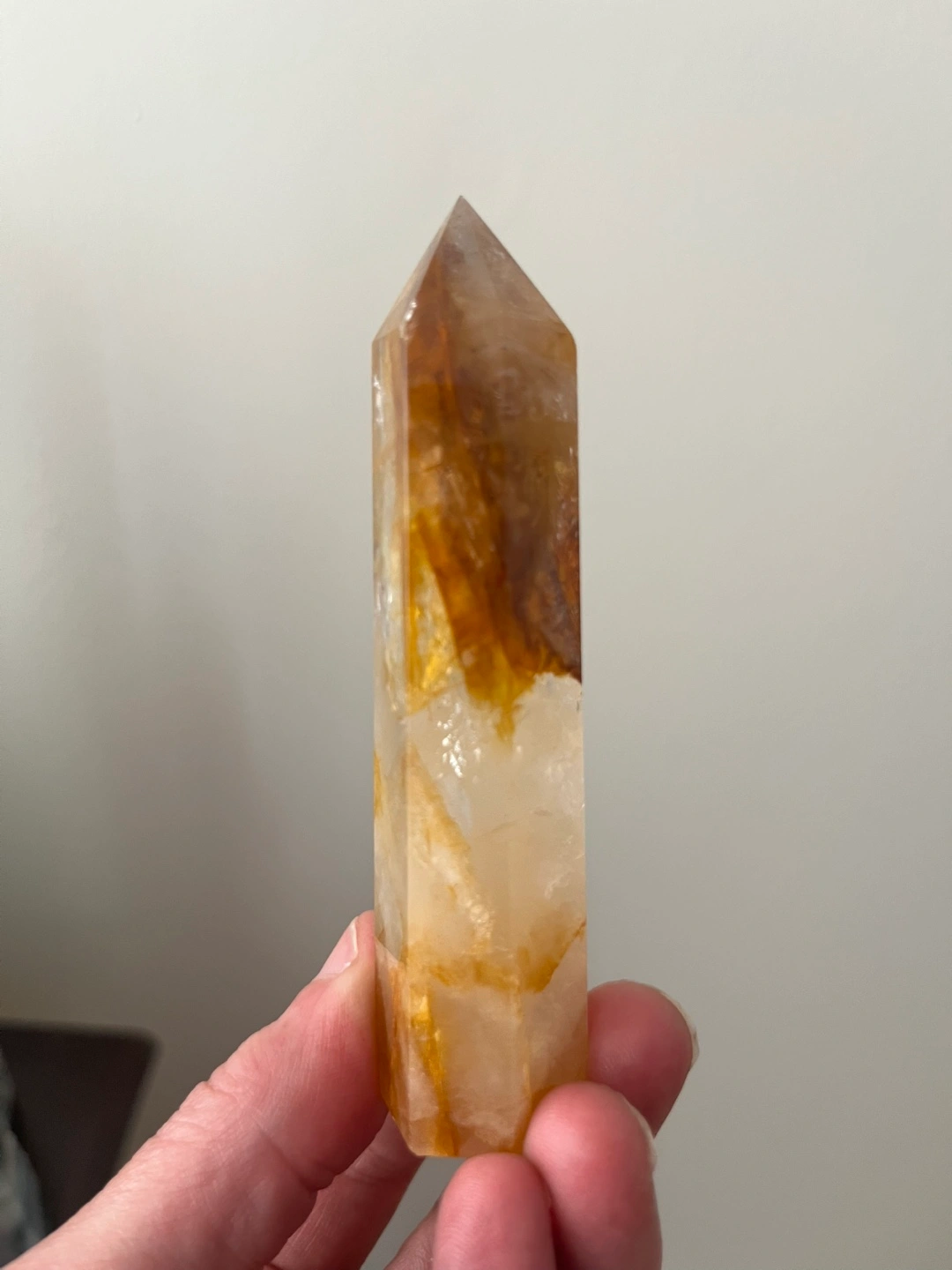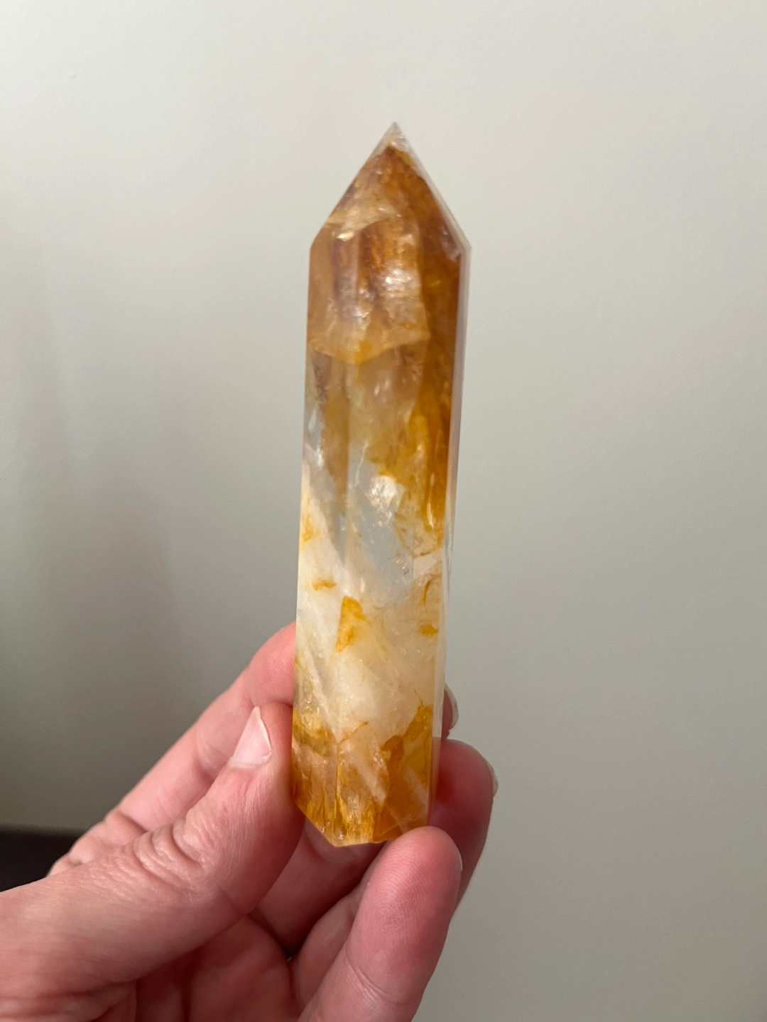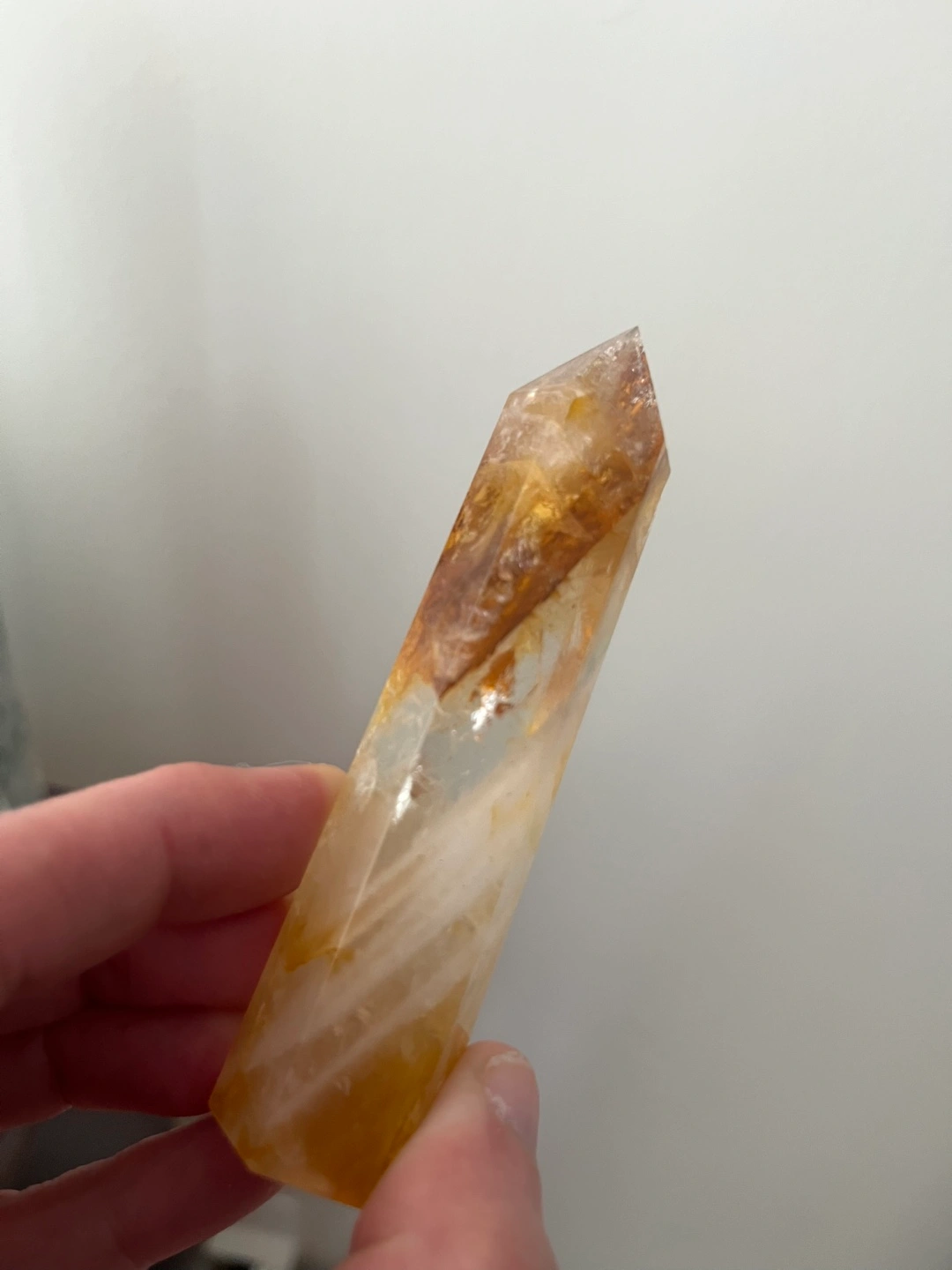 Beautiful golden healer quartz point. Unique colour and pattern. Excellent for energy work or collection.