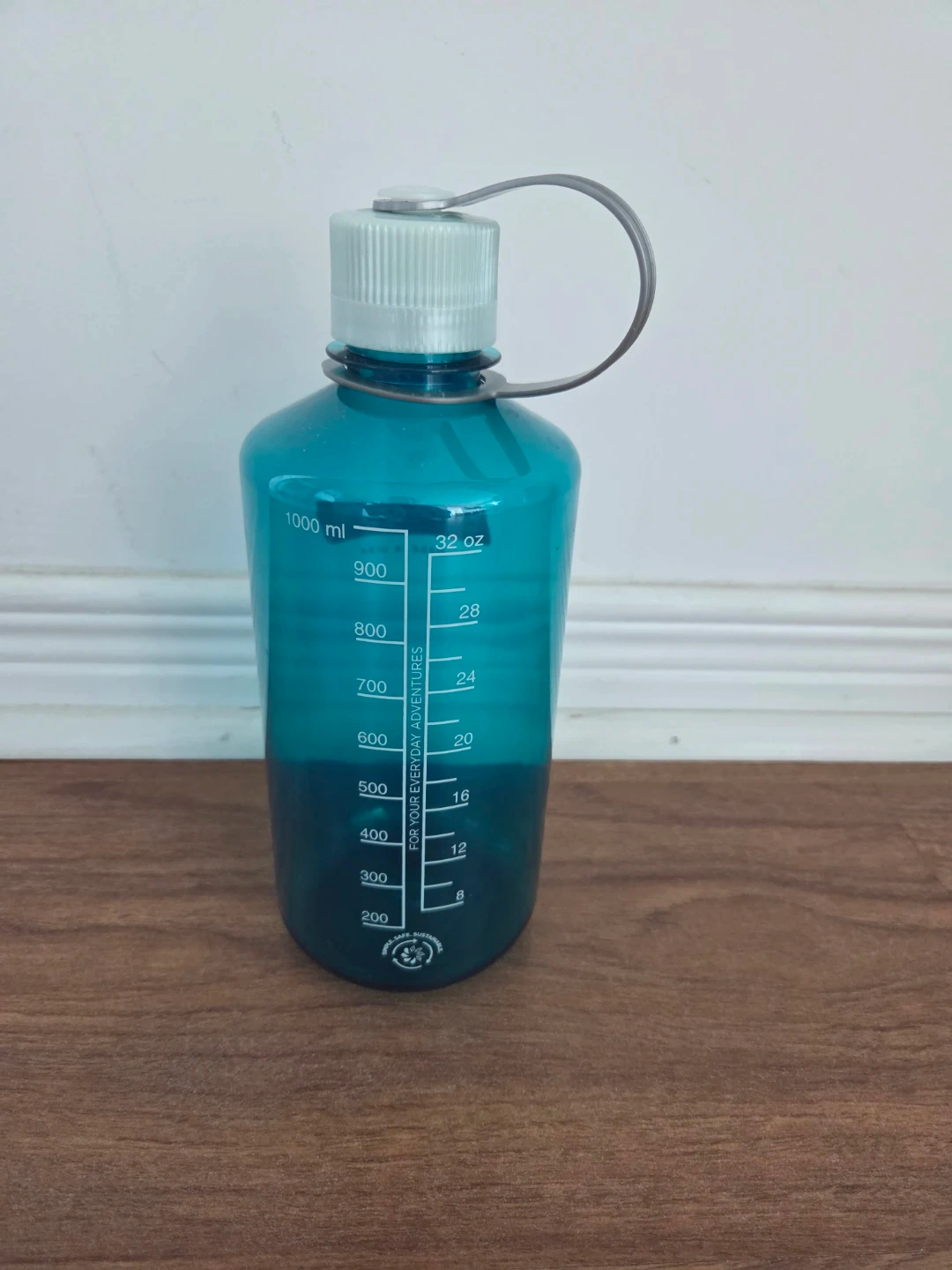 This is a Nalgene water bottle. It holds 1000 ml or 32 oz. Made in the USA. It's perfect for staying hydrated on the go!