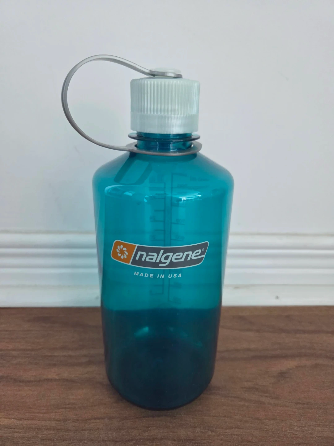 This is a Nalgene water bottle. It holds 1000 ml or 32 oz. Made in the USA. It's perfect for staying hydrated on the go!
