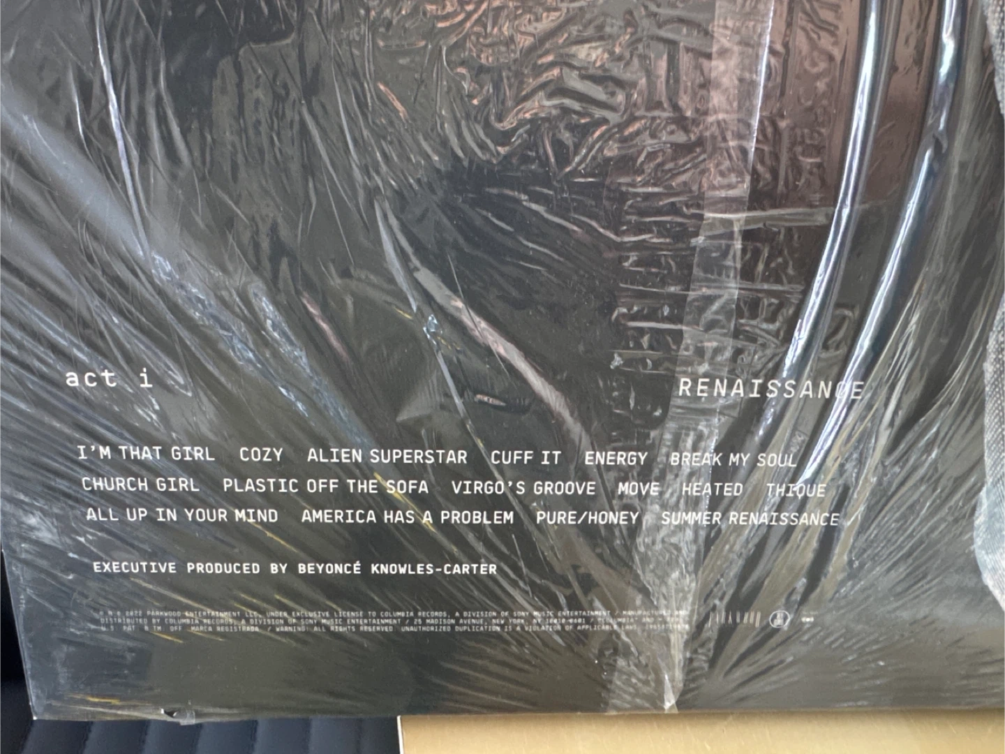 Sealed vinyl record of Beyoncé's Renaissance album. Includes a tri-fold poster. Listen to hits like 'Cozy' and 'Break My Soul'.