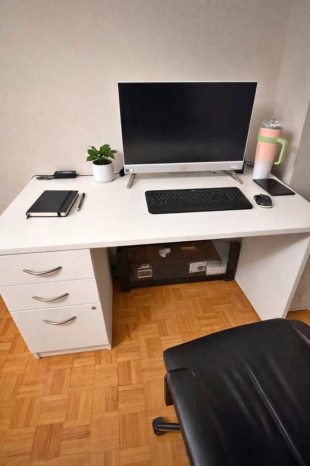 Stylish and sturdy white office desk, perfect for a home office, study room, or bedroom setup. Clean, modern design that fits well in any space.