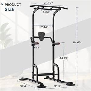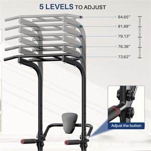 The H-shaped base maximizes the support area and has four enlarged suction cups at the bottom, keeping the dip bar stable and not shaking, increasing confidence and safety during exercise. This pull-up bar offers 6 types of exercise methods, meeting a wide range of strength training needs and suitable for your home gym. The unique top pull rod allows for diversified design, letting you choose the width and method you like according to your habits to exercise pull-ups. This pull-up station is a full-body training that can help strengthen your back, shoulder, and arm muscles, improve core stability, and body coordination. It has 5 adjustable height levels, ranging from 73.62'' to 84.65'', meeting the exercise needs of the whole family. Adjust the height with a knob for easy and quick adjustment to the desired height. Made of thickened steel pipe, it has a sturdy and durable steel frame, ensuring a long-lasting experience. The maximum load-bearing capacity is 300LBS, designed specifically for high-intensity training.