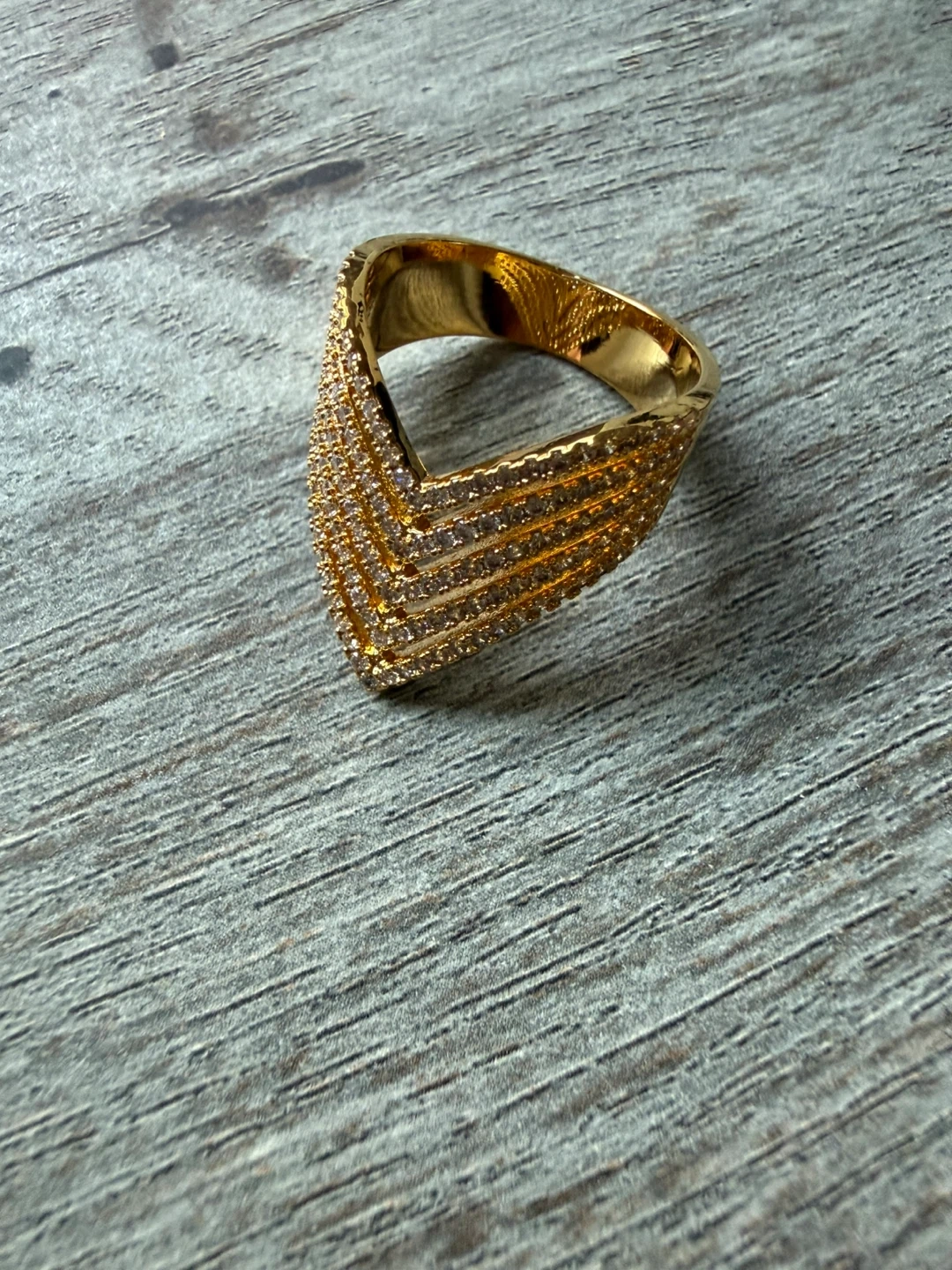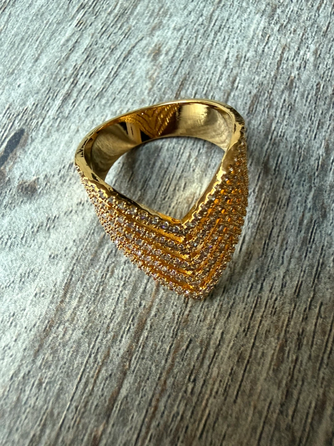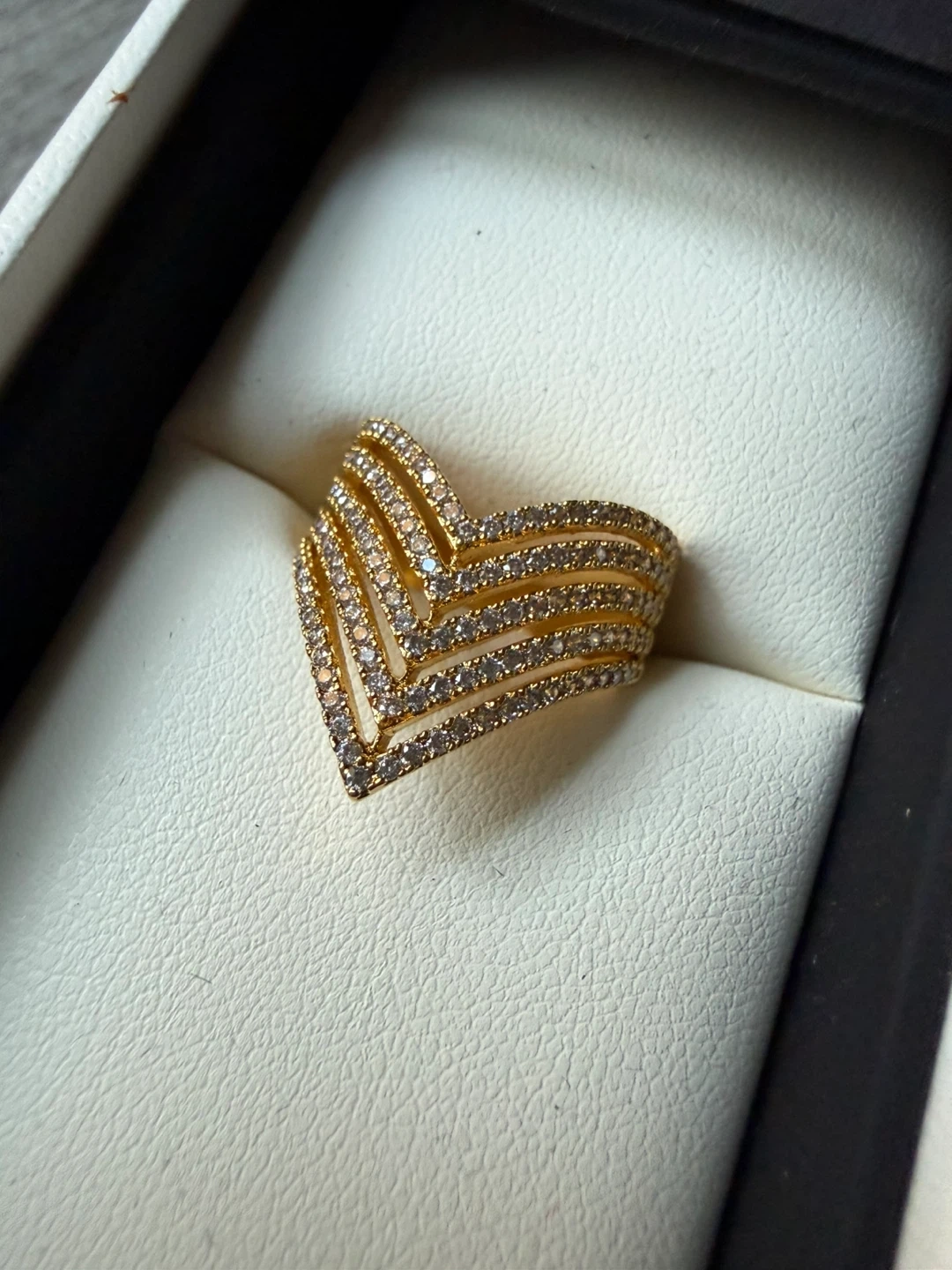 NEW: Gold-tone ring featuring a chevron design. Comes in a black and white presentation box. This ring's eye-catching sparkle makes it a great statement piece for special occasions!