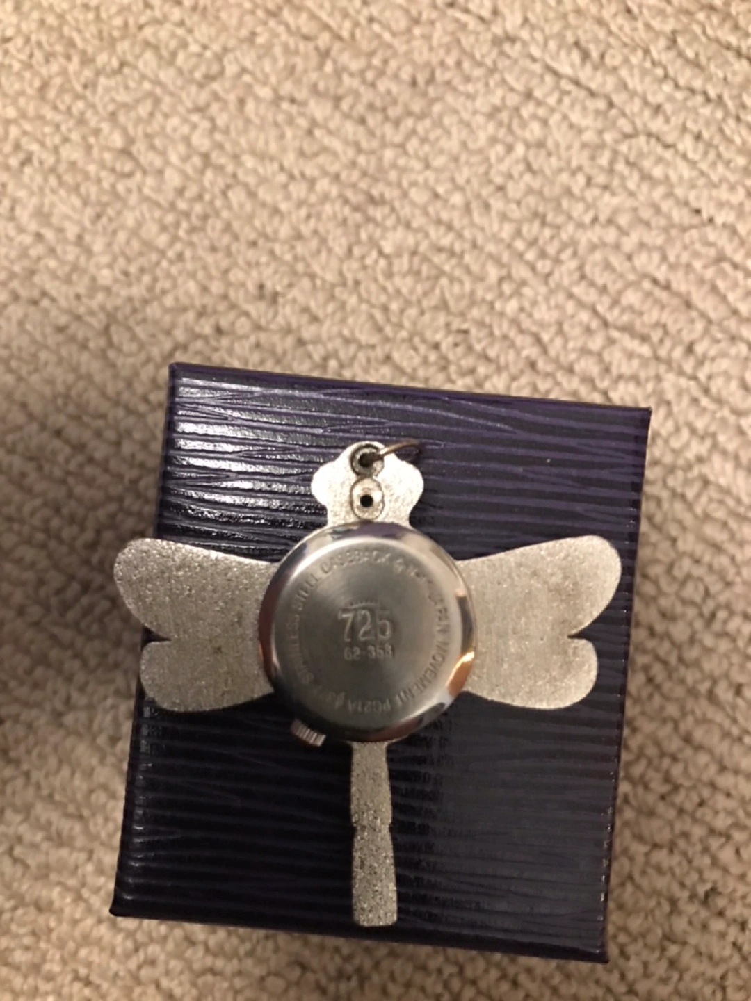 Here's a unique dragonfly pendant necklace watch! in great condition. The watch face has a pink background with numbers, and the dragonfly design is really eye-catching . Works fine
