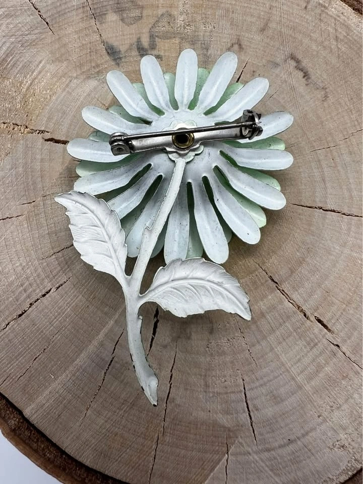 Vintage Lime Green Enamel Flower Brooch – Large Statement Pin 3”