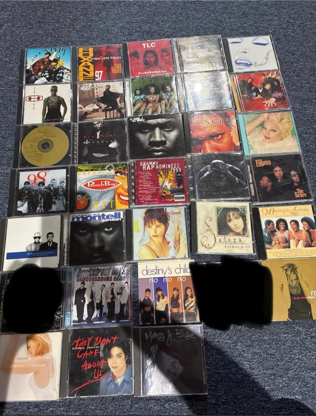 Selling a collection of various music CDs, featuring hits from the 80s, 90s and 2000s. These CDs, while previously enjoyed, are in good condition. This lot includes iconic artists such as TLC, Mary J. Blige, Michael Jackson, and more, offering a diverse mix of genres from R&B to pop and hip-hop.
