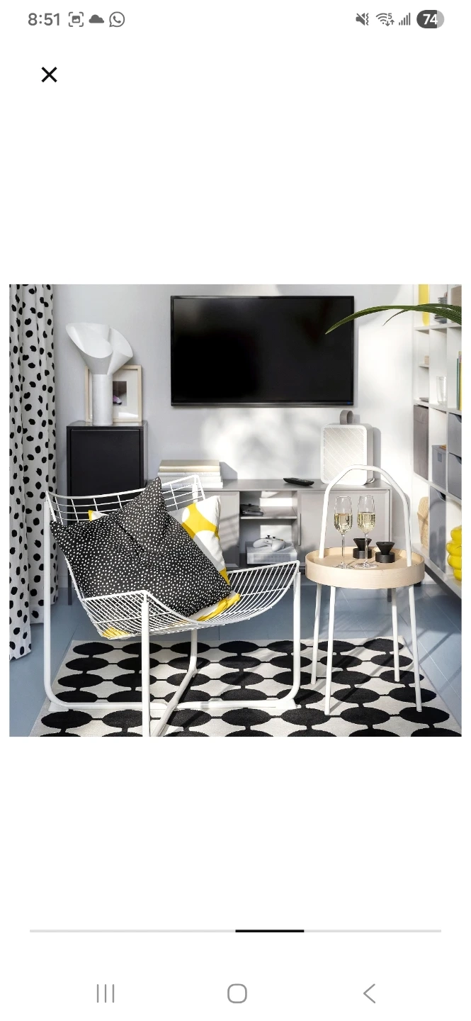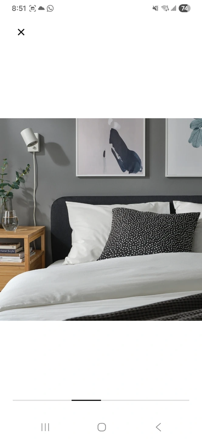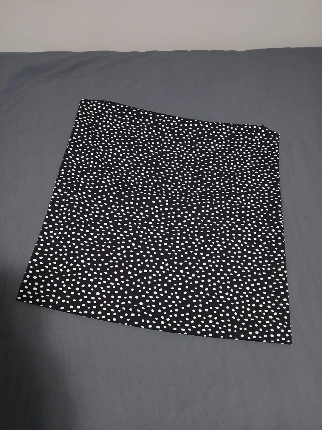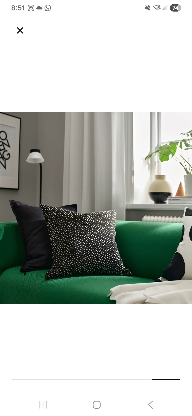 This is the IKEA BJÖRKGRÄMAL cushion cover. It's black and white with a speckled dot pattern. The dimensions are 50x50 cm (20x20 ").