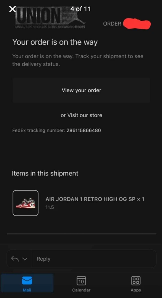 100% BRAND NEW NEVER EVEN TOUCHED THE FLOOR Union LA x Air Jordan 1 High Chicago Shadow.