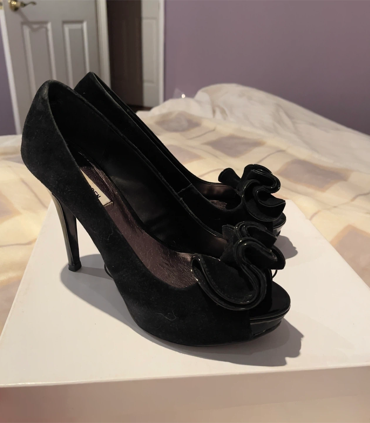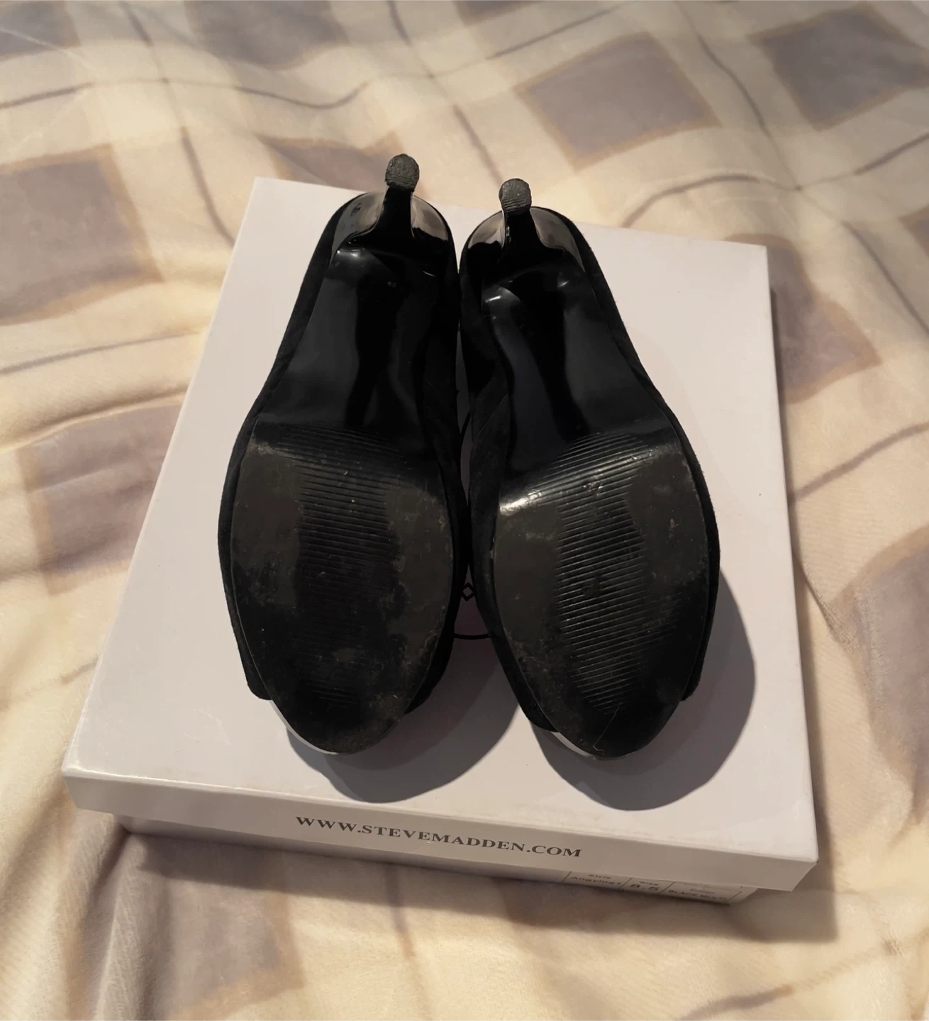 Selling a pair of Steve Madden Angylina heels in black! They are a size 8.5 and come with the original box. These stylish heels would be a great addition to your wardrobe!