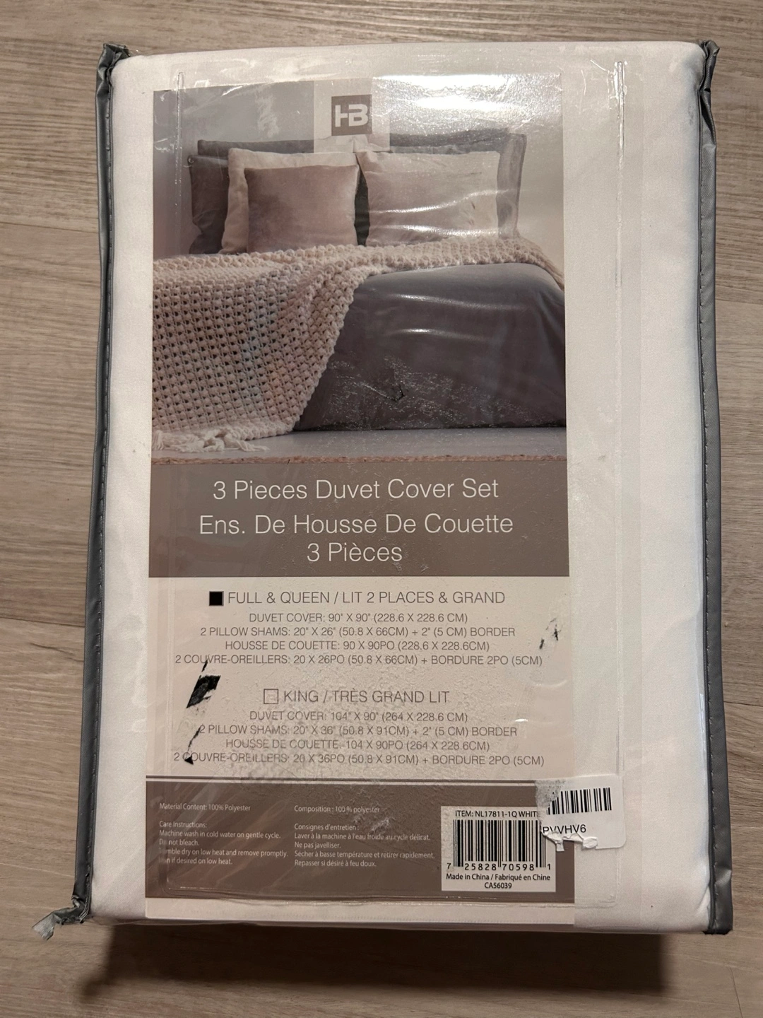 • 1 Duvet Cover: 90” x 90”