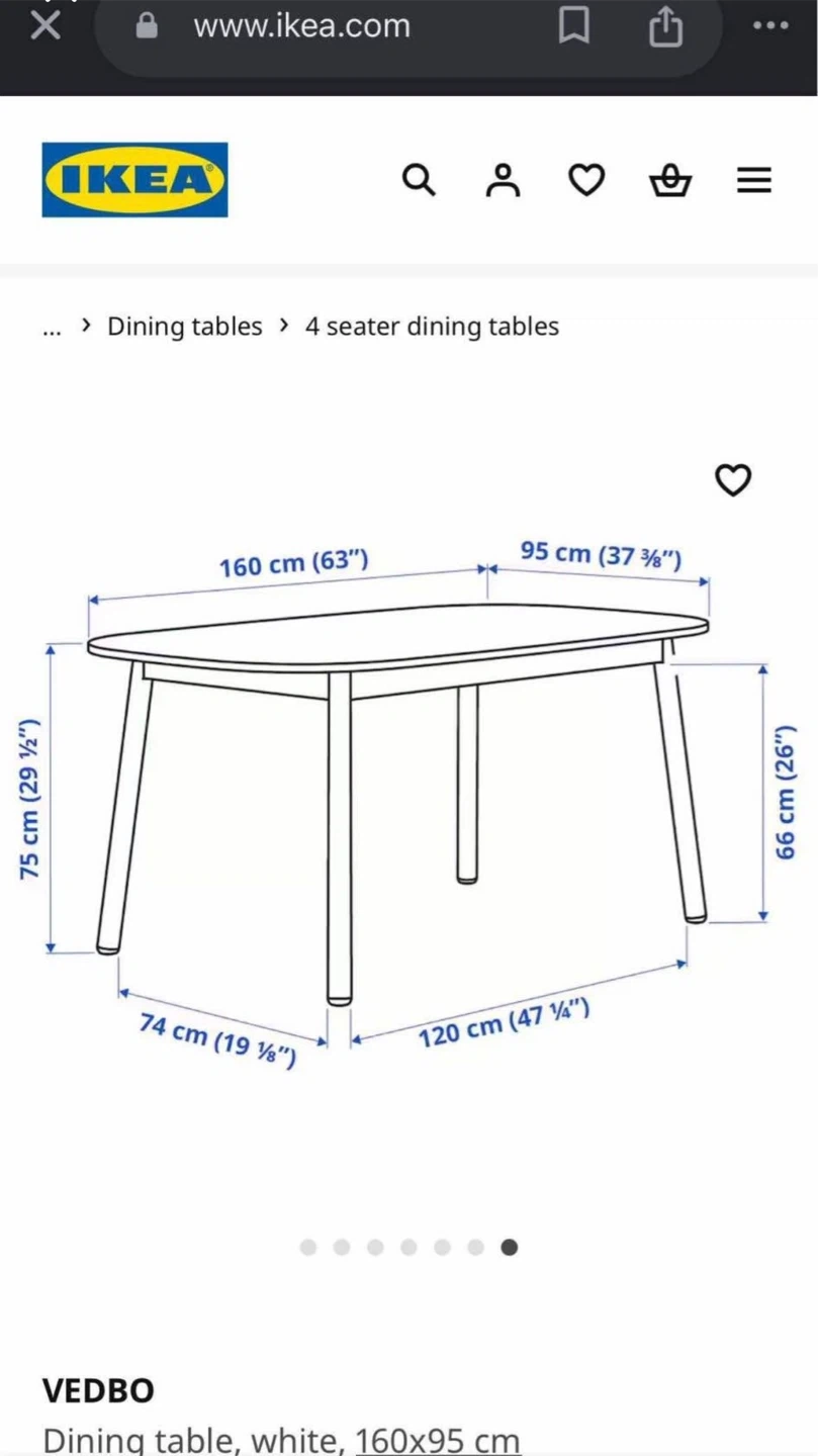 Selling an Ikea Vedbo dining table with six black chairs. The table comfortably seats six people and is in great condition. The table dimensions are 160cm x 95cm (63" x 37 3/8")