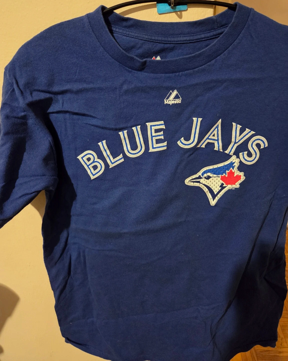 This Majestic t-shirt features the Blue Jays logo. It's made from 100% cotton. Size is M/M.