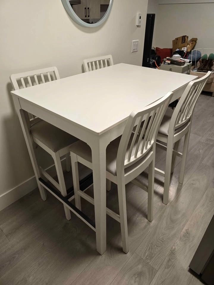IKEA EKEDALEN White Counter Height Dining Set with 4 Chairs