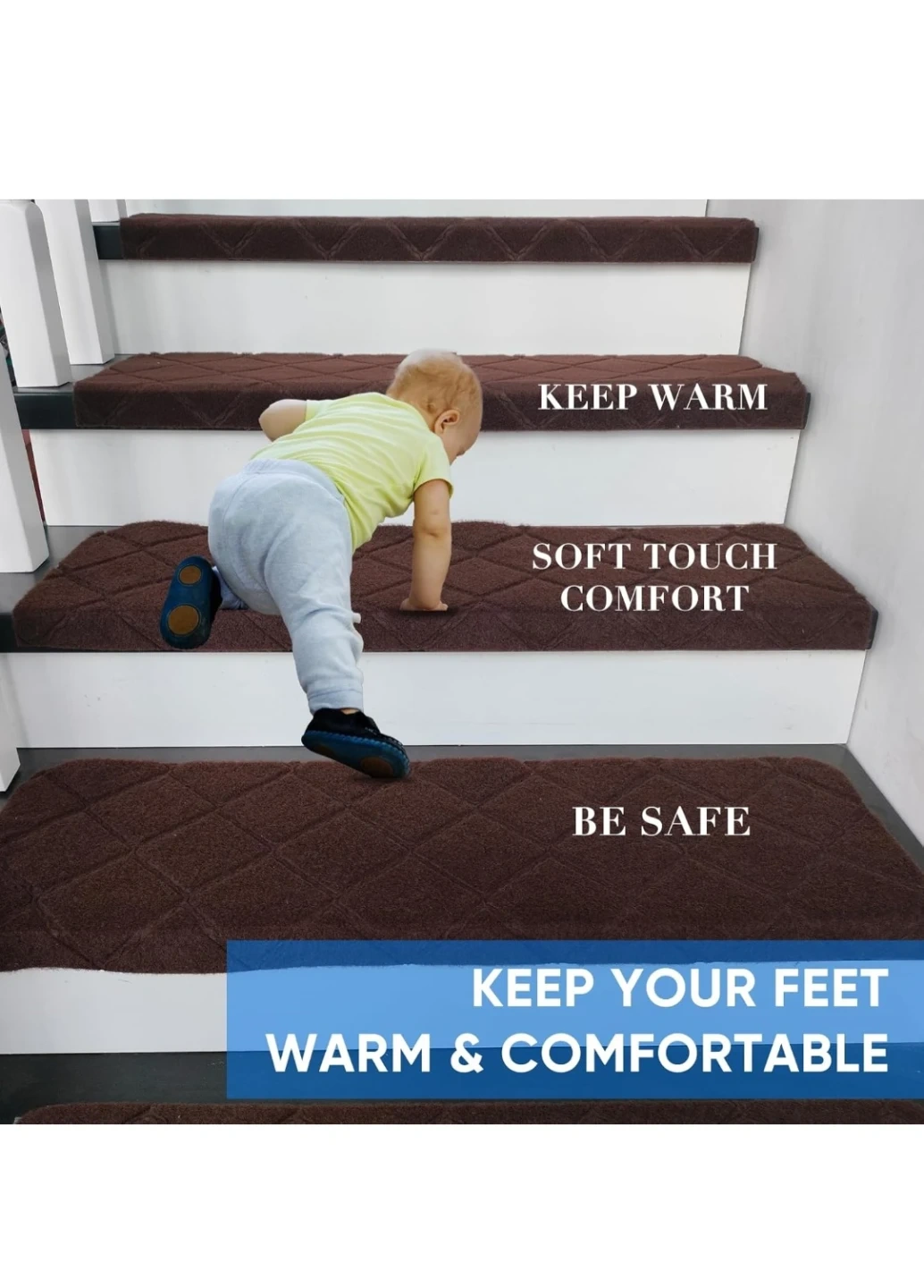 Enhance your stairs with these comfortable and safe stair treads. They're easy to install and help prevent slips, keeping your feet warm and secure. The material is also easy to clean!