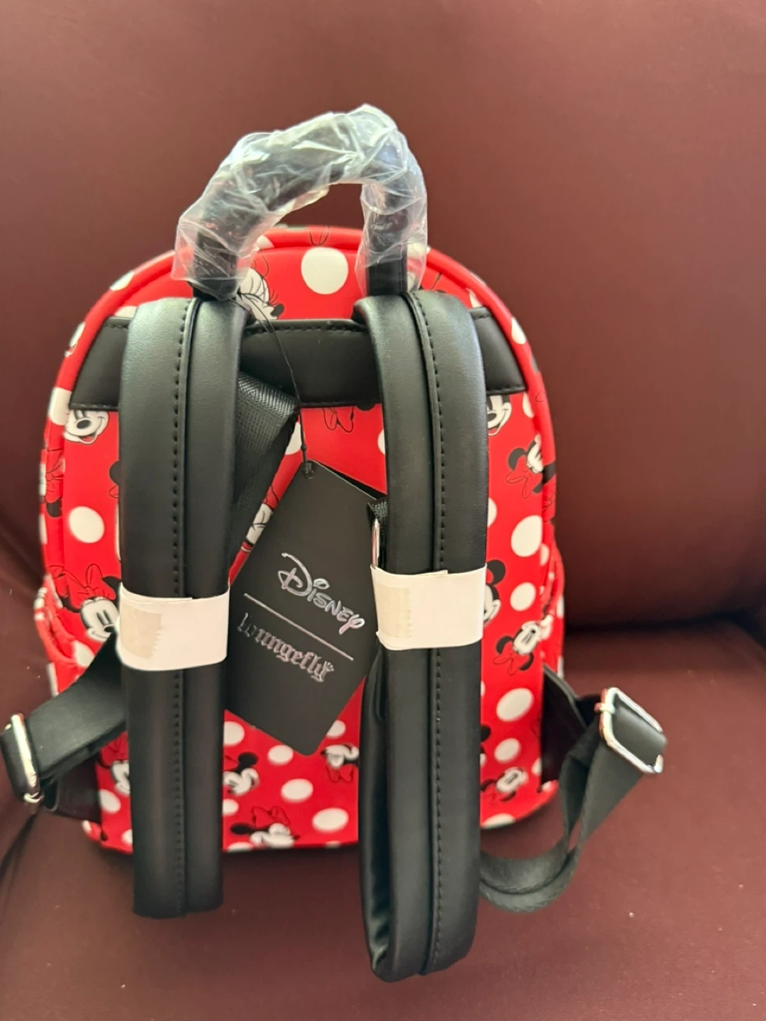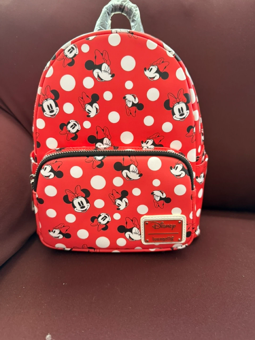 Check out this adorable Disney Loungefly mini backpack! It features a fun Minnie Mouse polka dot design in red and white. Perfect for Disney fans of all ages! It's in new condition with tags.