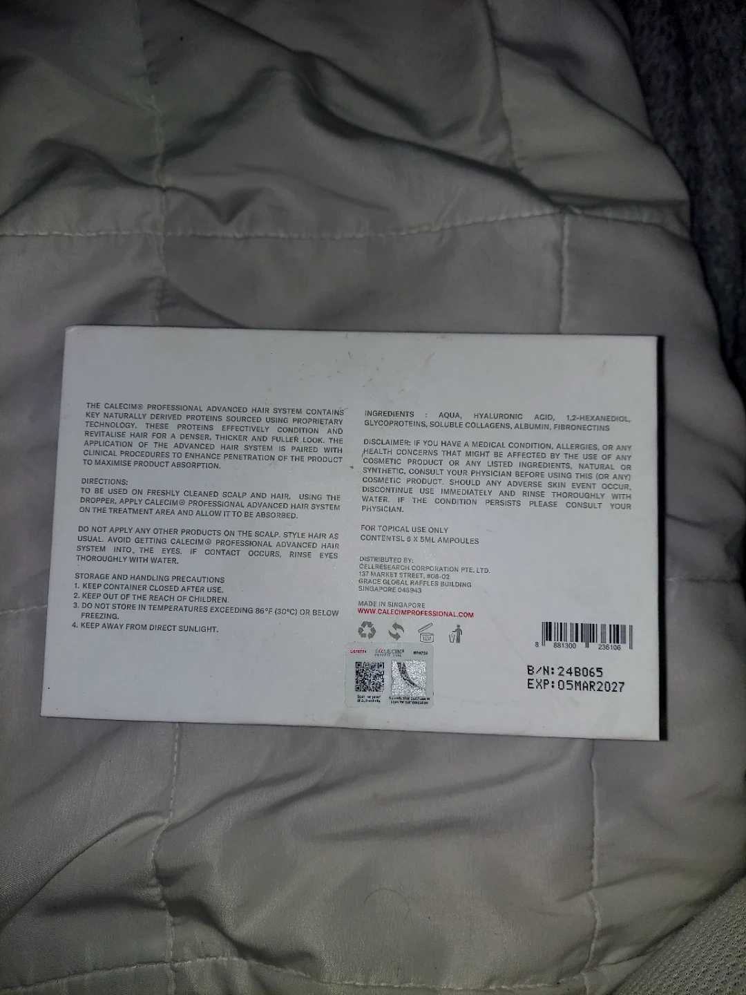 This is a boxed set of CALECIM Professional Advanced Hair System ampoules. It's powered by PTT-6 technology. The expiration date is March 2027. For topical use only. $ 20 each