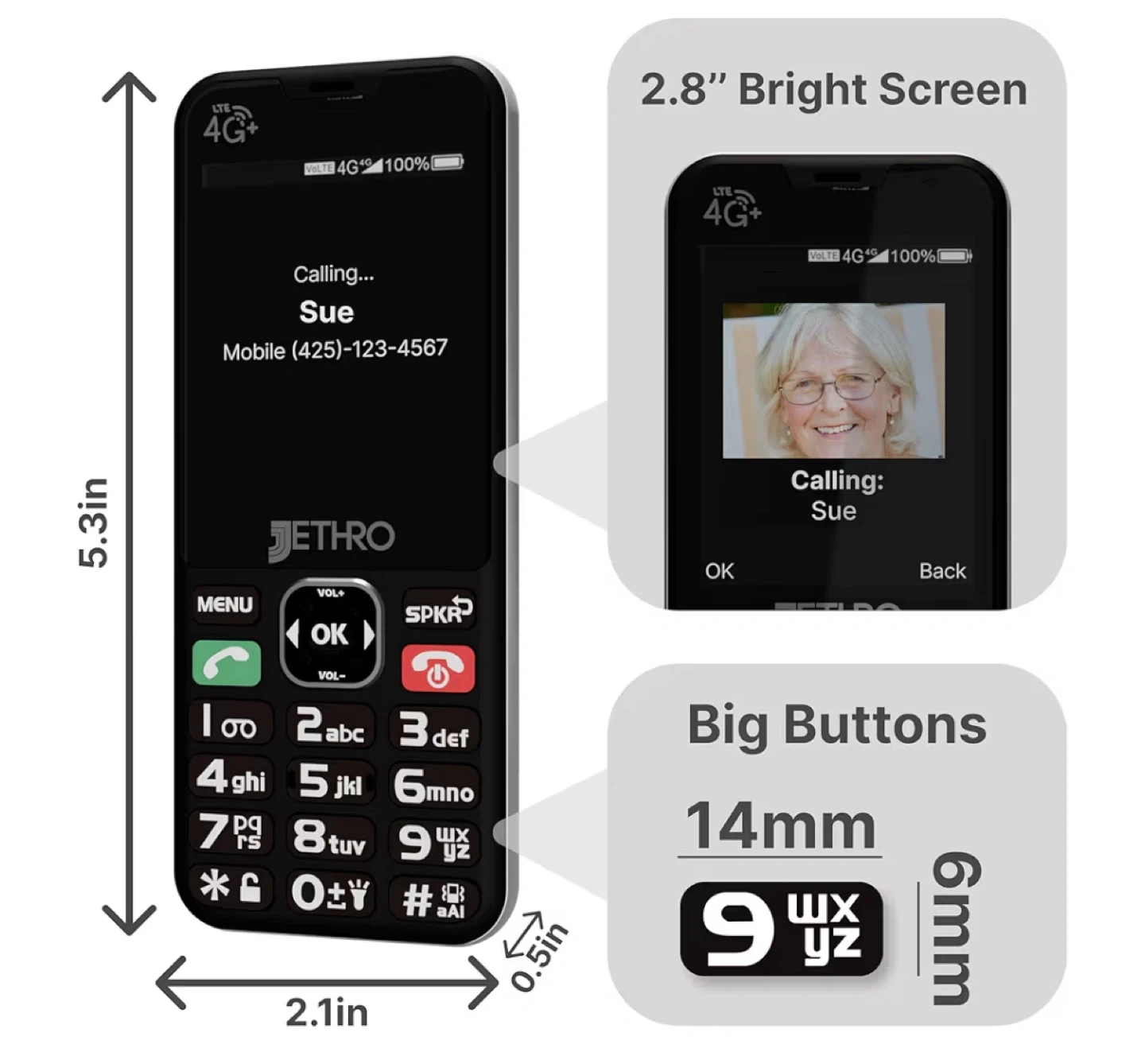 Jethro SC490 Unlocked 4G LTE Cell Phone for Seniors