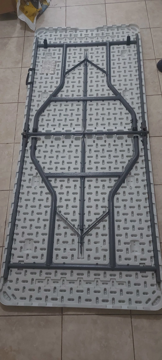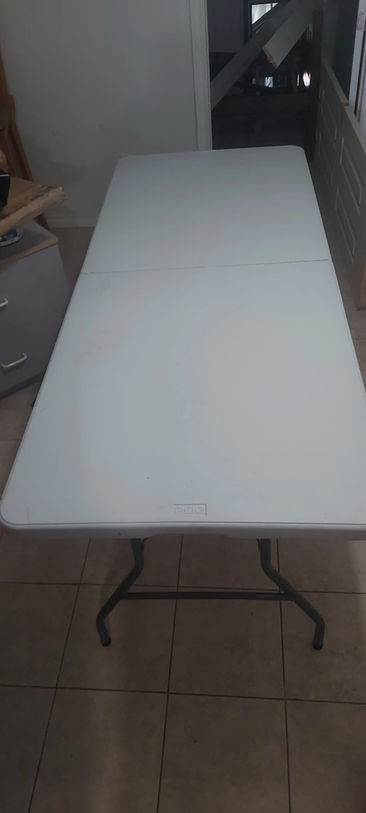 Selling a DGC folding table. It measures approximately 71 inches in length and 29 inches in width. Great for extra table space when you need it!