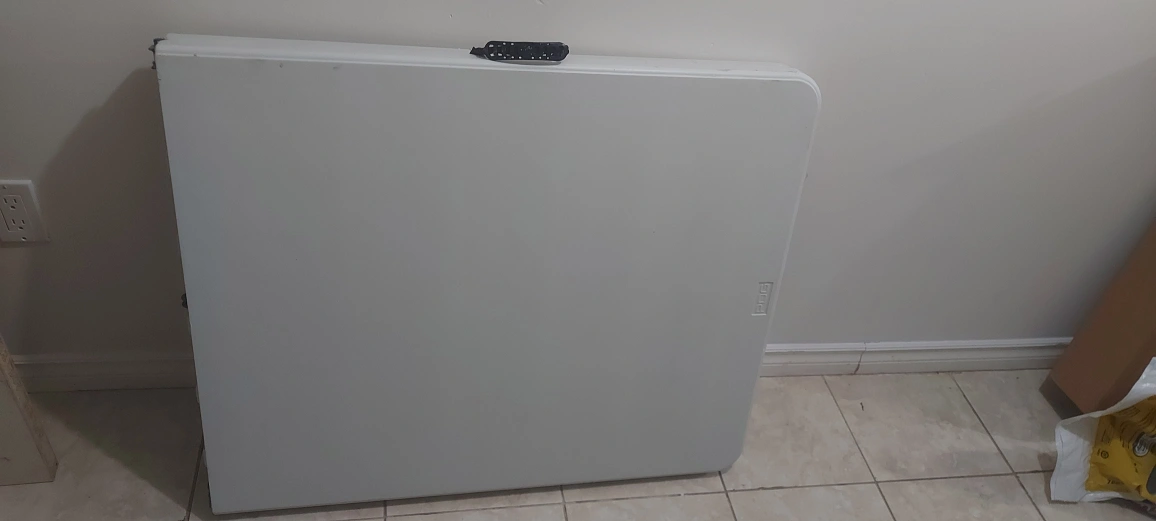 Selling a DGC folding table. It measures approximately 71 inches in length and 29 inches in width. Great for extra table space when you need it!
