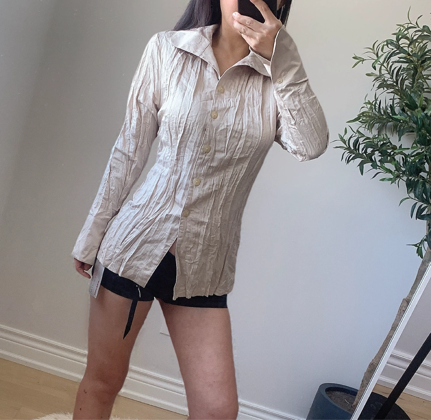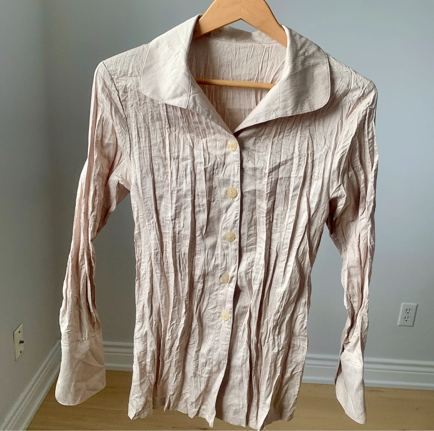 Brand new with tags vintage-style textured shirt in a soft beige tone.