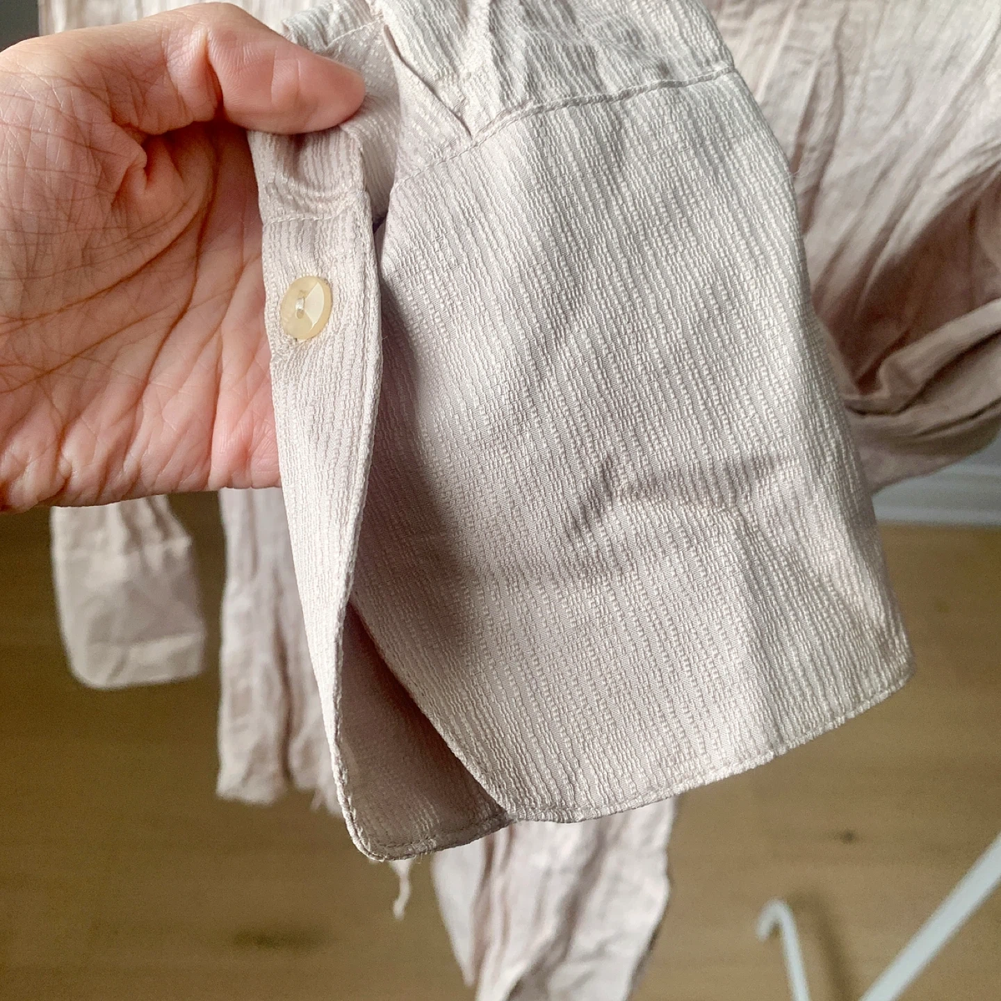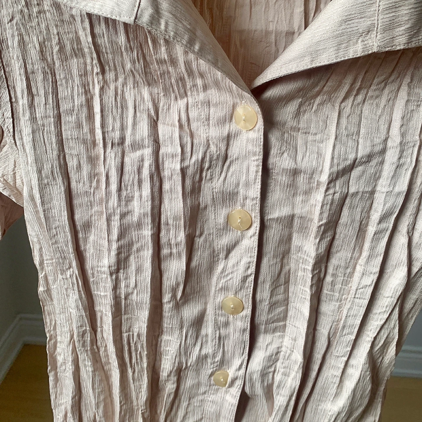 Brand new with tags vintage-style textured shirt in a soft beige tone.