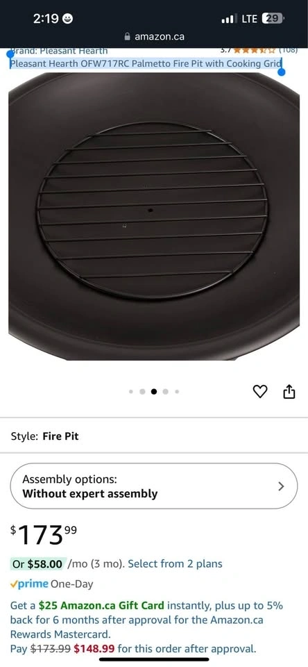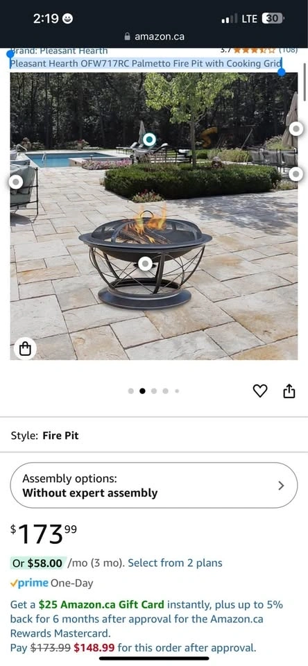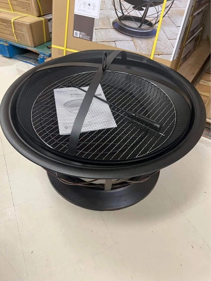 Features a 30-inch round fire bowl with high-temperature paint. Includes a cooking grid for BBQs, a wood grate for better airflow, and a mesh cover to reduce sparks. A poker is included to safely tend the fire and lift the spark guard.