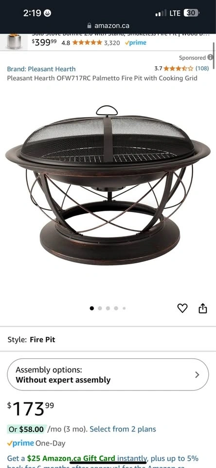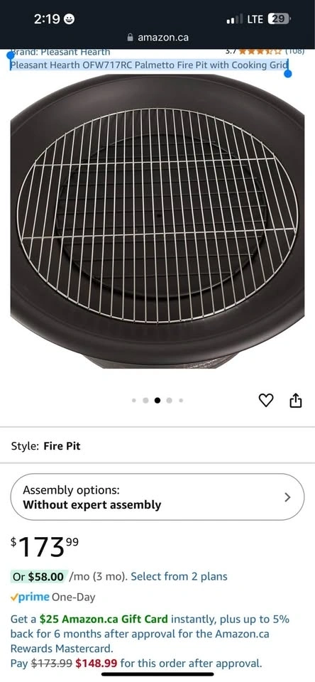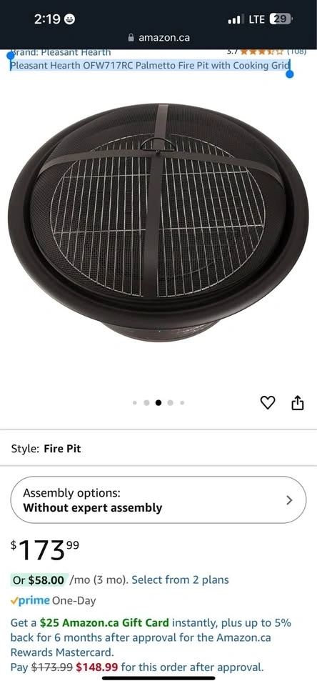 Features a 30-inch round fire bowl with high-temperature paint. Includes a cooking grid for BBQs, a wood grate for better airflow, and a mesh cover to reduce sparks. A poker is included to safely tend the fire and lift the spark guard.