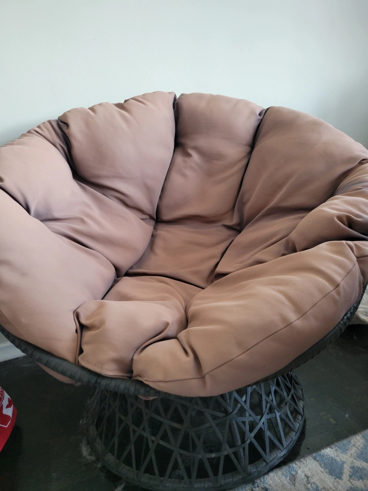 comfortable swivel egg chair for sale or best offer! sun-kissed on one side which changed the coloring, still in eggcellent...condition.