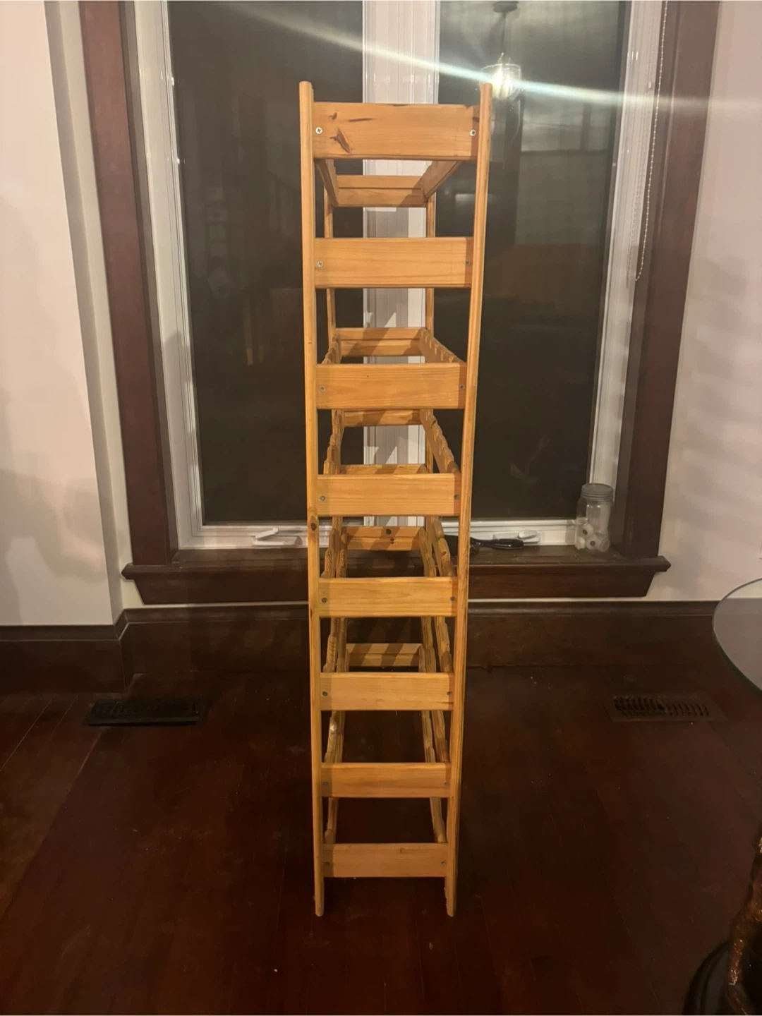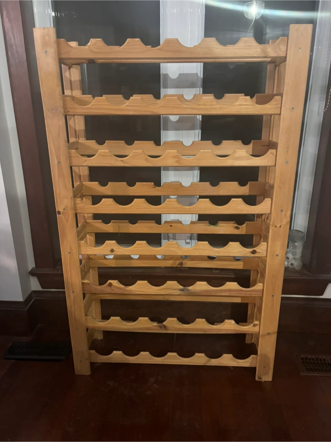 $65 or best offer - Beautiful freestanding solid wood wine rack in excellent condition. Holds approximately 40–50 bottles and features a classic scalloped design that keeps bottles secure.
