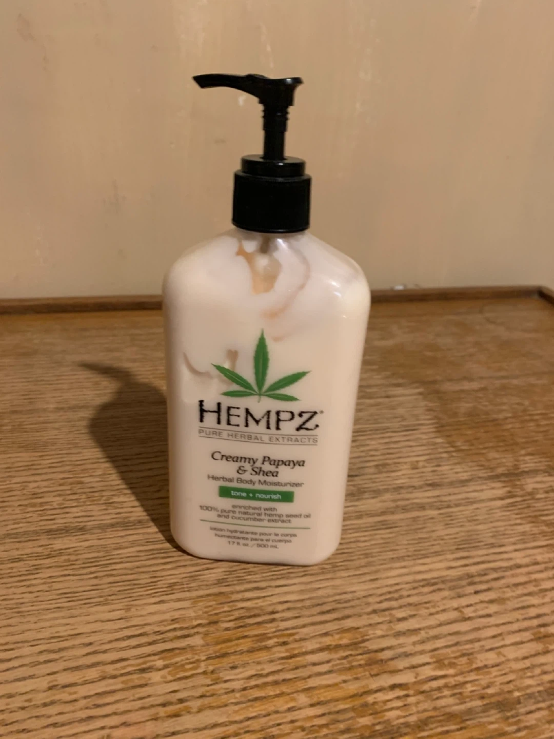 Selling a Hempz Creamy Papaya & Shea Herbal Body Moisturizer! This lotion is enriched with 100% pure natural hemp seed oil and cucumber extract. It's a lotion that helps to tone and nourish your skin. The bottle contains 17 fl oz / 500 mL of product