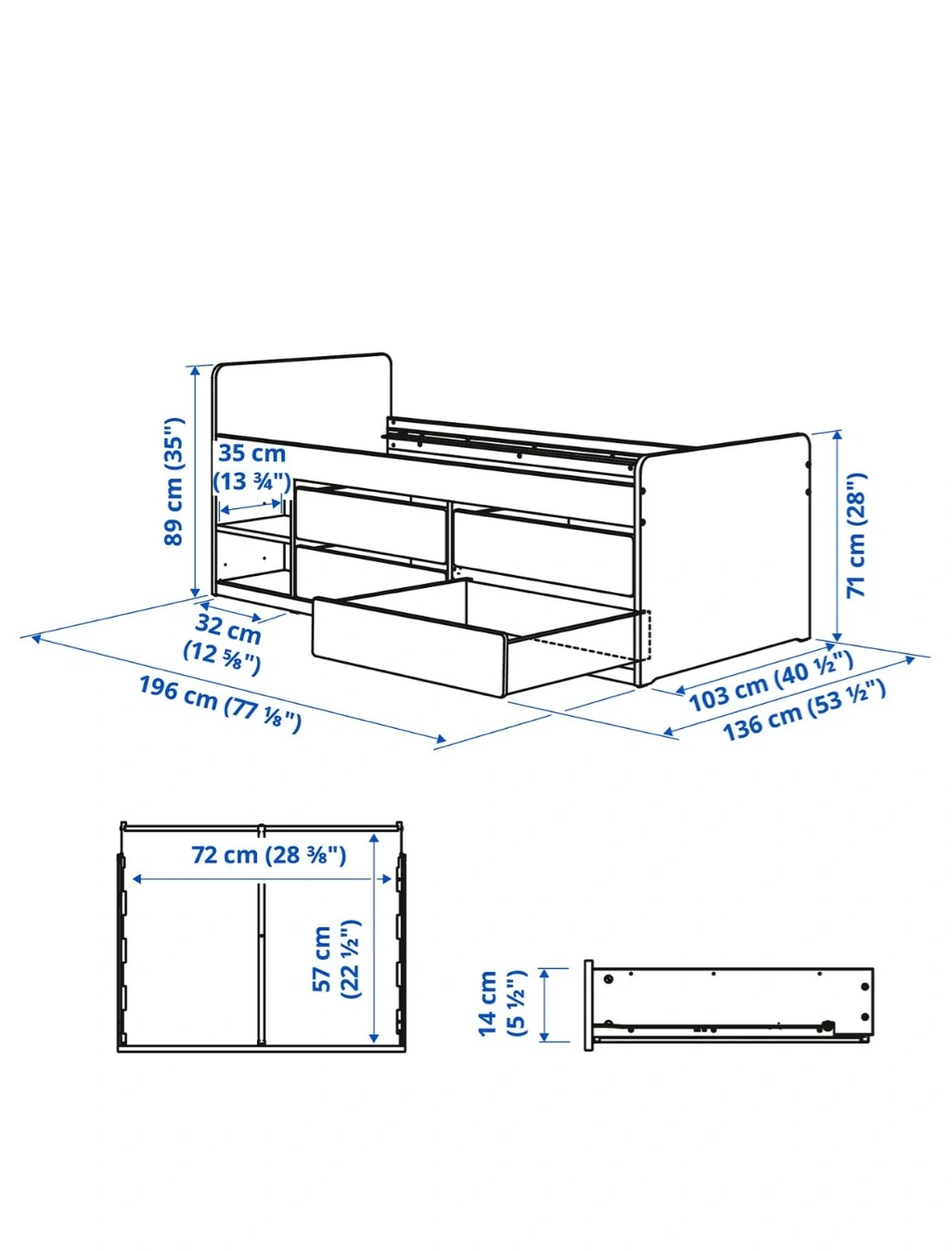 This listing includes the underbed drawer frames and support slats for an IKEA TWIN bed frame. It comes with four large drawers, perfect for storing linens or seasonal clothing. These drawers are designed to fit under the bed frame, maximizing your bedroom space!