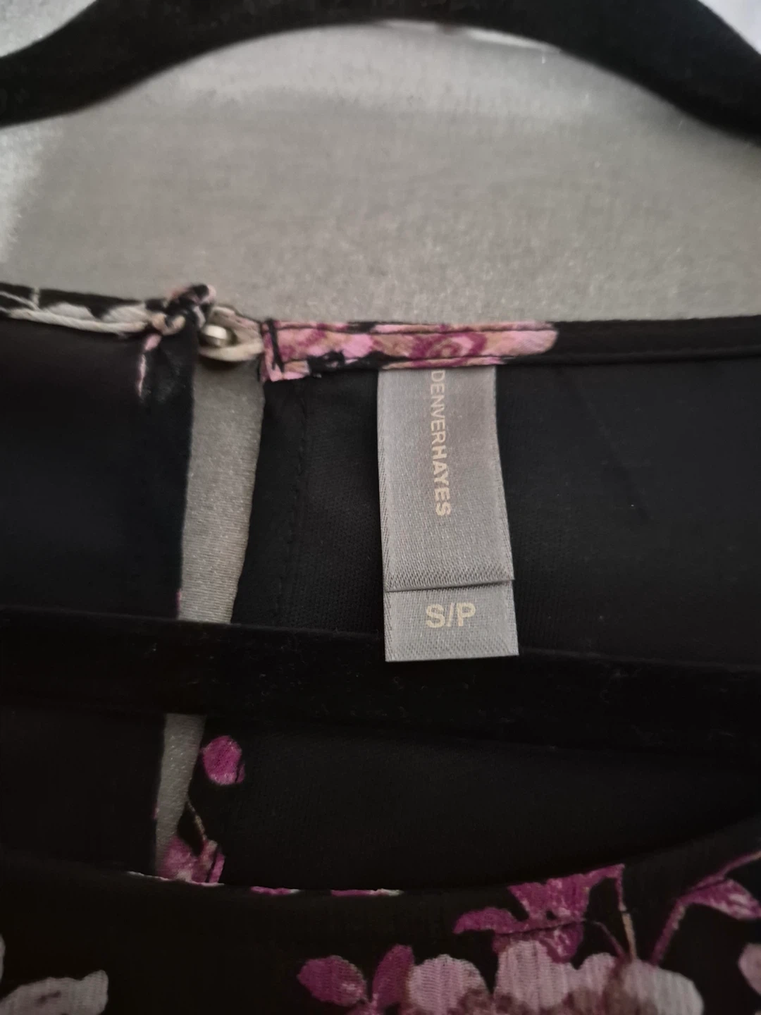 Black Print Blouse, purchased from Denver Hayes, body is lined, sleeves unlined, back neck keyhole opening with button closure, 100% Polyester. size Small, $12 or best offer.