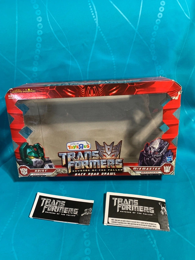 This Toys R Us exclusive set for Transformers Revenge of the Fallen includes two figures, Hoist and Mixmaster. Also includes the box (only main part, no internal components), instructions for both figures, 2 x missiles. Hoist has been heavily covered in marker. I am posting many other transformers so check my other listings Willing to trade for Spider-Man stuff, redlines, old tokens