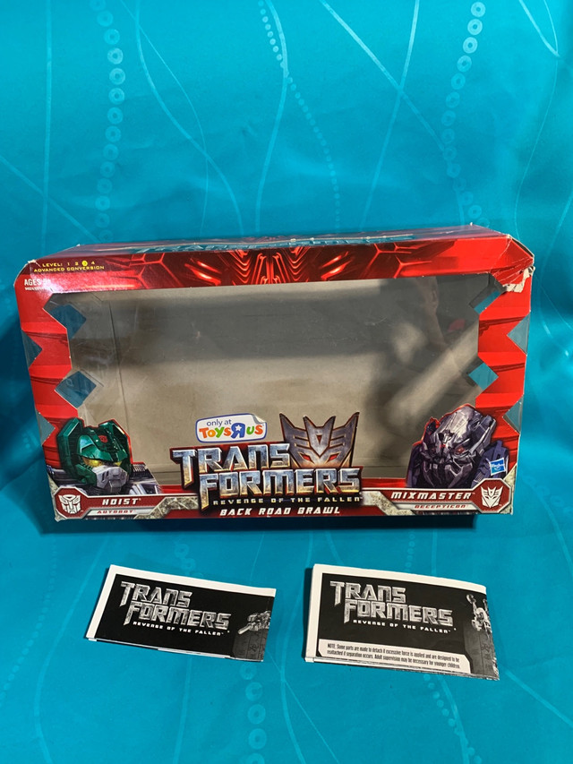 This Toys R Us exclusive set for Transformers Revenge of the Fallen includes two figures, Hoist and Mixmaster. Also includes the box (only main part, no internal components), instructions for both figures, 2 x missiles. Hoist has been heavily covered in marker. I am posting many other transformers so check my other listings Willing to trade for Spider-Man stuff, redlines, old tokens