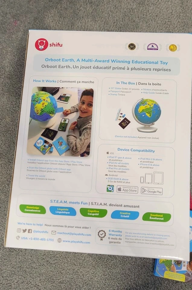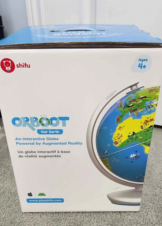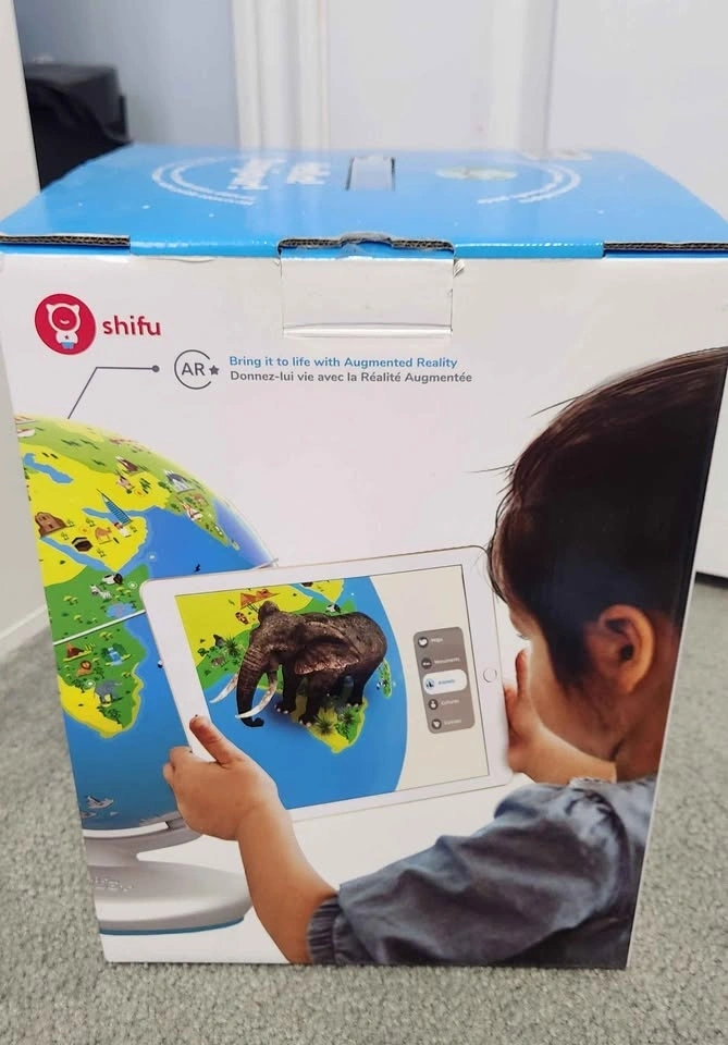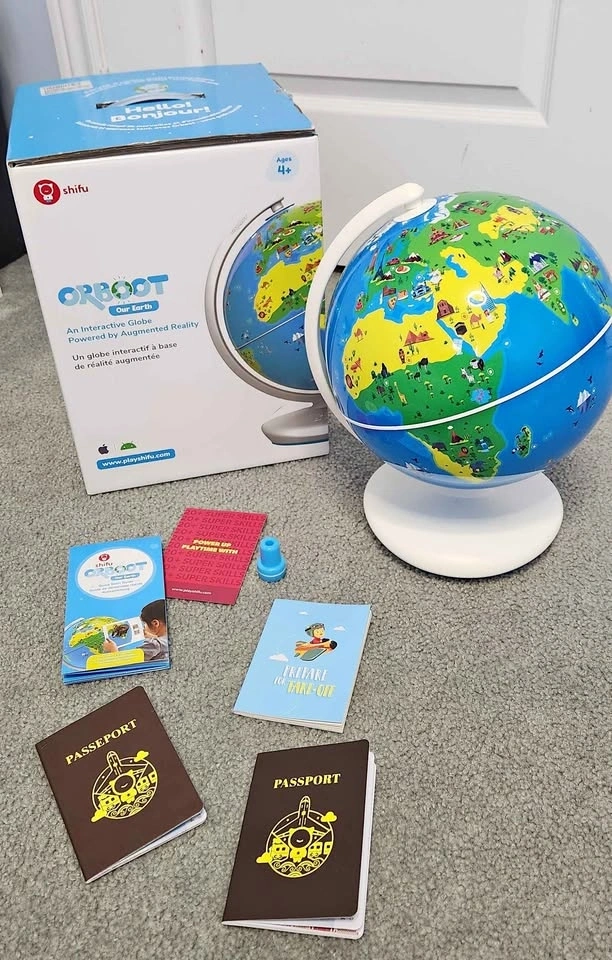 Used a couple of times, with two passport pages marked but the rest is unused. Excellent condition. This educational interactive globe is powered by augmented reality. The set includes the Shifu Orboot globe, original box, passport, stamp, and stickers. It works with a companion app on tablets or smartphones. Pickup available at Chinguacousy and Charolais in Brampton, near Copeland Public School.